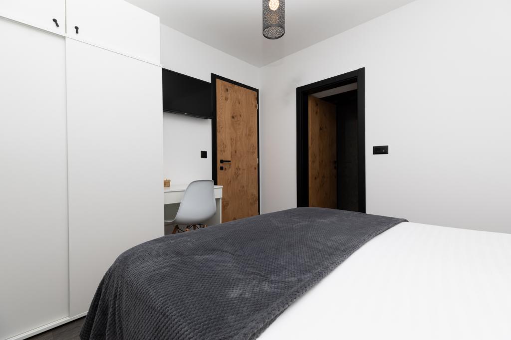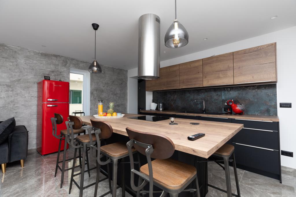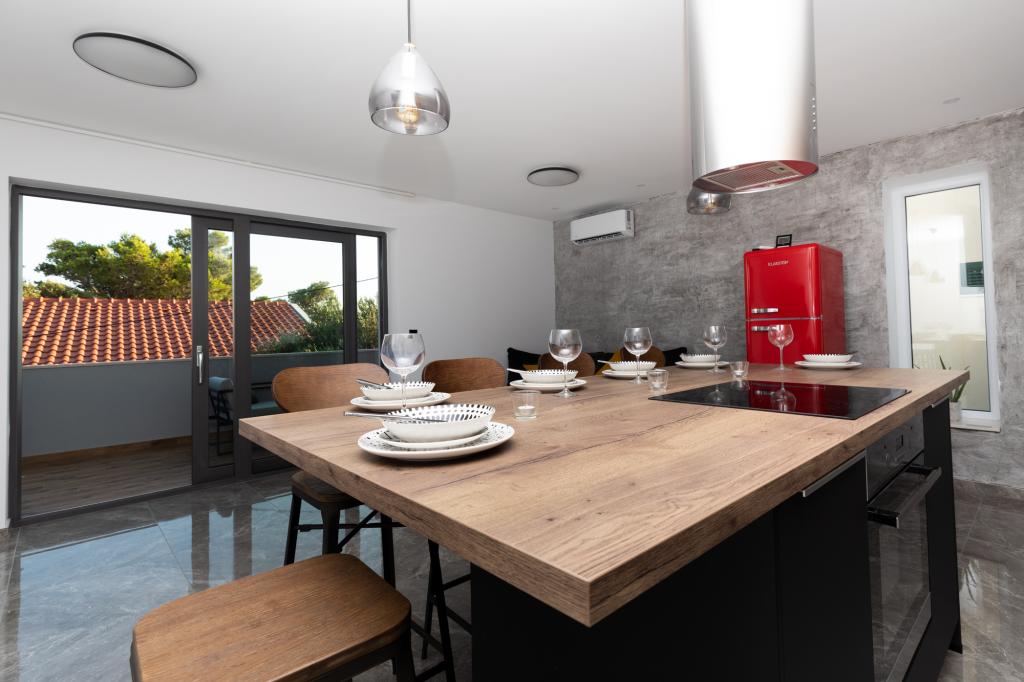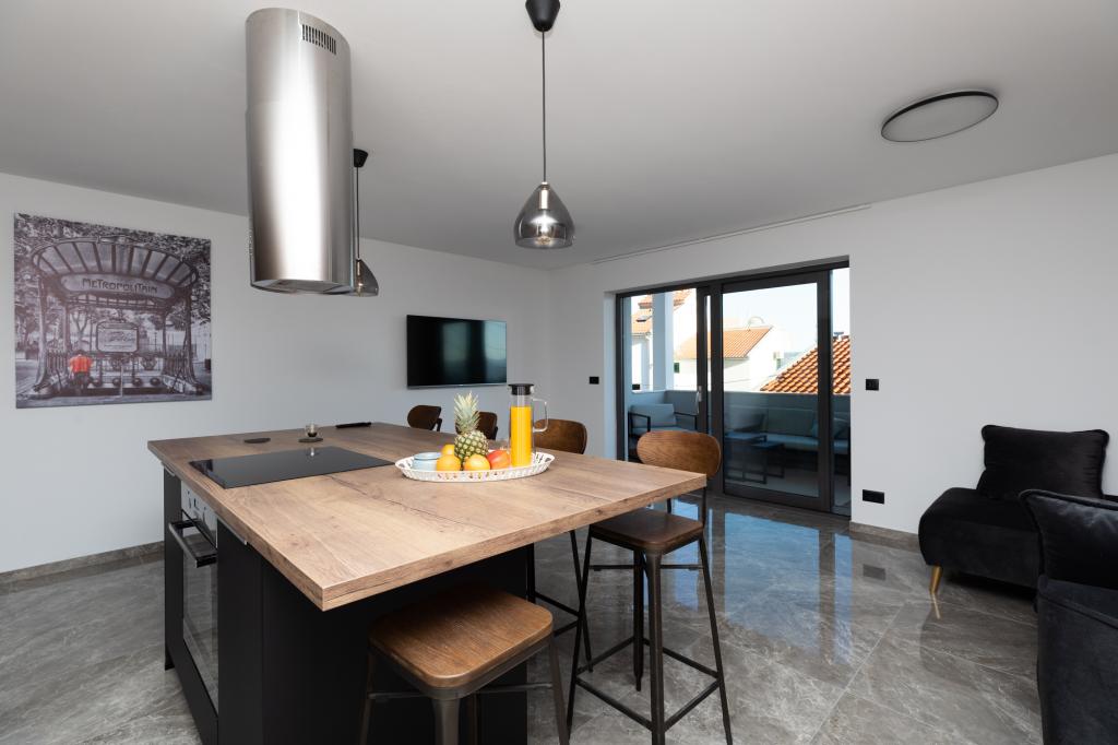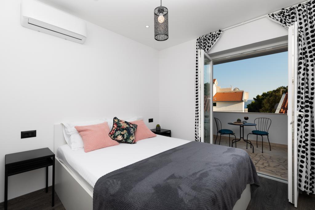 Całkowicie nowo urządzony, nowoczesny apartament składający się z 2 sypialni, 2 łazienek, rozkładanej sofy, 2 balkonów i 1 tarasu. Wyposażony we wszystkie niezbędne akcesoria. Jacuzzi. 20 m od pięknej plaży w spokojnej wiosce Medici. 13 km od Omis i 20 km od Makarskiej.
