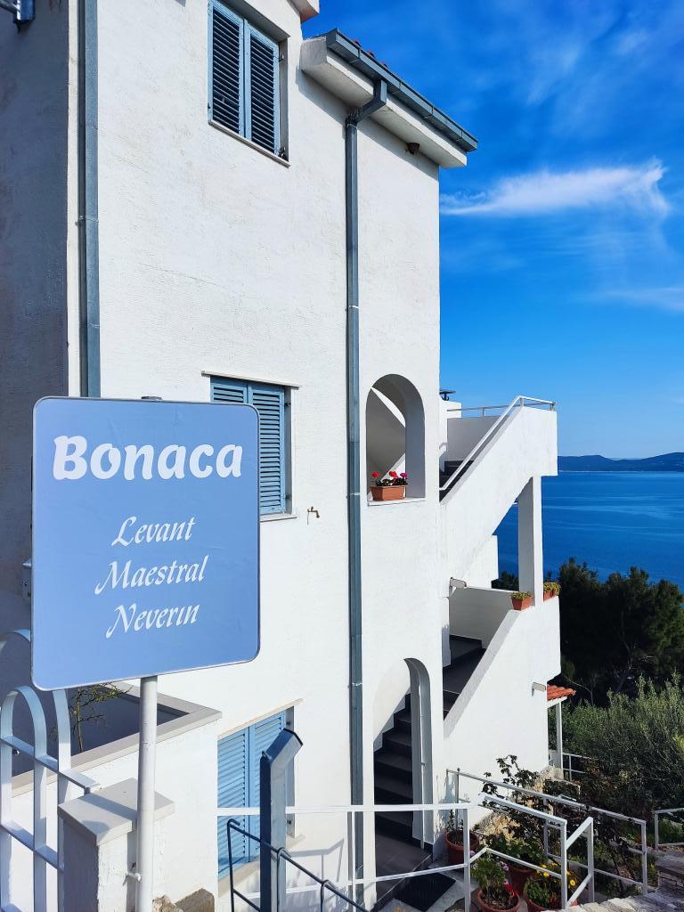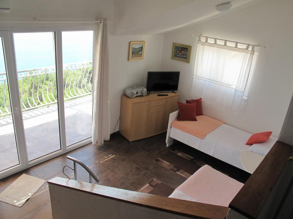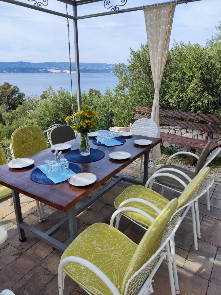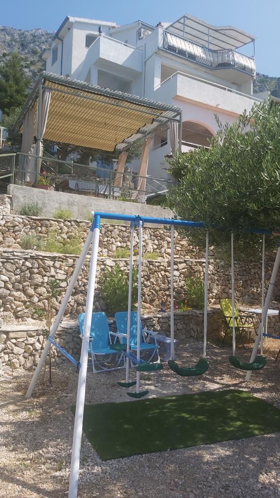 Nasz dom zbudowaliśmy jako dom rodzinny, który składa się z 3 przestronnych apartamentów, po jednym na każdym piętrze, oraz oddzielnych, dużych tarasów. Wokół domu znajduje się wspólna przestrzeń z grillem i altaną. Z tarasów roztacza się piękny widok na pobliskie wyspy i półwysep Pelješac. Dom otoczony jest małymi ogrodami, w których rosną rodzime rośliny, takie jak lawenda, rozmaryn, wrzos i szałwia, a całość ogrodzona jest ręcznie wykonanymi, tradycyjnymi kamiennymi murkami. Znajduje się tu również kilka drzew oliwnych, z których owoców wytwarzamy oliwę, którą pakujemy jako drobne pamiątki dla naszych gości. Za domem znajduje się duży, oświetlony nocą parking, dostępny wyłącznie dla naszych gości. W ogrodzie znajdują się leżaki i huśtawki dla dzieci. Do pięknej, piaszczysto-żwirowej plaży (300 m od domu) można dotrzeć pieszo / tunelem pod główną drogą lub samochodem. W bezpośrednim sąsiedztwie znajdują się trzy inne podobne plaże.