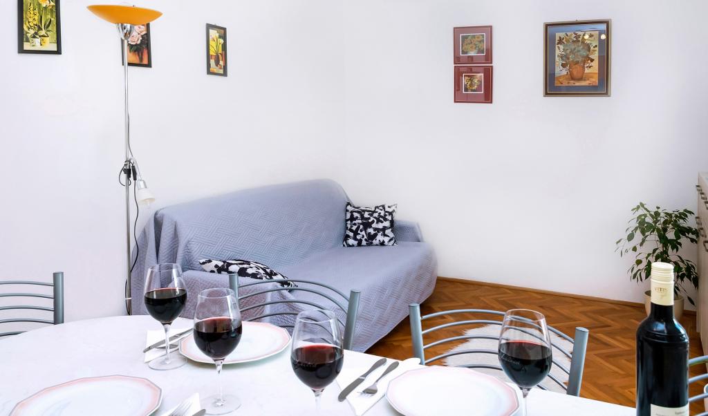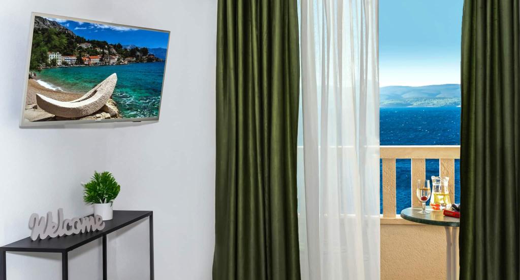 Tu jest jak w raju ... Z jednej strony morze, z drugiej góry. W Polsce potrzeba na to minimum 800km, żeby być w górach i nad morzem, tu mamy to w kilku metrach. Gospodarze bardzo ale to bardzo mili i gościnni, pokoje czyściutkie, nic nie brakuje, łącznie z garnkami i patelniami itp. Moja żona, zazwyczaj bardzo wybredna i spostrzegawcza z uwagi na pracę w Sanepidzie niema zastrzeżeń i czuje się jak w raju to mówi samo za siebie. Generalnie polecam bardzo, po drodze było pełno "apartmani" ale co z tego jak tylko tu mamy góry i morze pod nosem, w innych apartamentach trzeba przebiegać przez ruchliwą ulicę. Jeszcze raz Dziękuję Blaženka. Hvala, Marek.