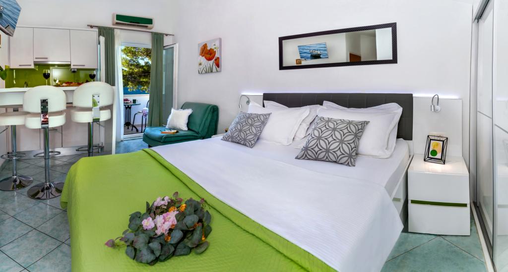 Wczoraj wróciliśmy z tego pięknego i spokojnego miejsca przyjemnego na odpoczynek. Mieszkanie jest dobrze wyposażone, widok z balkonu cudowny, tarasy otaczające piękne, kilka kroków do pięknej, małej i spokojnej plaży. Gospodarze to mili i porządni ludzie. Ciężko pracują wokół każdego gościa. Prawdziwe wakacje dla duszy. Dziękuję Ci