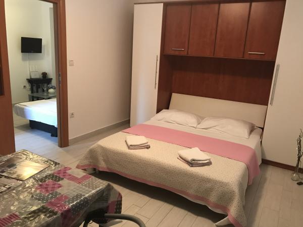 Świetne zakwaterowanie. Mieszkaliśmy w apartamencie z dwoma pokojami i dwoma łóżkami typu king-size, który ma małą kuchnię ze wszystkim, czego potrzebujesz do szybkiego przygotowania posiłków... Bezpłatny parking... Cudowni właściciele.. Zakwaterowanie jest w zasadzie na plaży i jest przyjazne dzieciom. To miłe, małe miejsce, ciche i idealne na wakacje z małymi dziećmi.. Jest kilka małych i kameralnych plaż, nie ma tłumów, nie ma głośnej muzyki, po prostu cisza i spokój... dużo naturalnego cienia.. W pobliżu znajduje się bar na plaży i restauracja.. Zdecydowanie polecam i również wrócę.