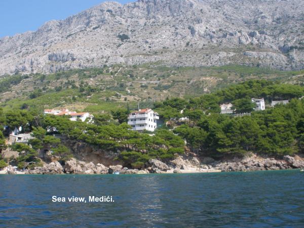 Apartamenty znajdują się w pięknej, spokojnej lokalizacji z pobliskimi zielonymi drzewami i niesamowitymi widokami na morze z balkonów. W odległości około 2 minut spacerem od domu znajduje się prywatna, piękna plaża lub można odwiedzić główną plażę Medici z dwoma barami. Apartamenty znajdują się w niewielkiej odległości od sklepu spożywczego (7 minut spacerem), a także od niektórych restauracji (w mimice około 10 minut spacerem). Jeśli przyjedziesz tam samochodem, możesz również odwiedzić pobliskie miejsca, które są często odwiedzane przez turystów (Omiš, Brela, Split, Makarska itp.) Mieszkanie było czyste z naprawdę ładnym wnętrzem. Jest wspólny grill dla wszystkich gości (obok kamienicy). Właściciele to mili i stale uśmiechnięci ludzie i zawsze chętni do pomocy, jeśli czegoś potrzebujesz. Całkowicie polecam te apartamenty osobom, które nie lubią zatłoczonych plaż i wieczornego intensywnego hałasu, ponieważ jest tam naprawdę spokój i cisza. Naprawdę podobały nam się nasze wakacje i wszyscy mamy nadzieję, że kiedyś wrócimy.
