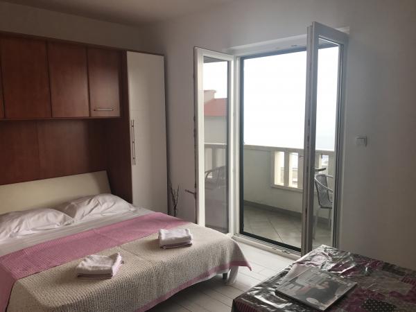 Apartament blisko morza około 50m po schodkach, bezpośrednio bez przechodzenia przez ulicę, plaża żwirkowa, czysta zadbana, dosyć spora -prywatna . Apartament składa się sypialni z łóżkiem małżeńskim i małej części kuchenno jadalnej, w której jest rozkładana sofa dla 2 osób. Dodatkowo jest taras z częściowym widokiem na morze. Kuchnia wyposażona w podstawowe niezbędne naczynia do gotowania, ładna spora łazienka. Bardzo mili gospodarze, polecam dla osób szukających ciszy, doskonałe dla osób z dziećmi.