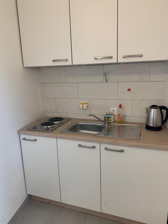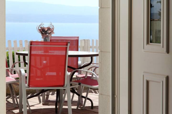 dom położony jest w pięknym i cichym miejscu, około 15 minut spacerem do plaży lub 2 minuty jazdy samochodem, a bezpośrednio na plaży można zaparkować bezpłatnie. Posiadamy dwa baseny, duży parking, pomieszczenie z pralkami, grill... zwierzęta są mile widziane, a palenie dozwolone jest tylko na zewnątrz, wszystkie apartamenty są dobrze wyposażone i mają balkony z widokiem na morze.