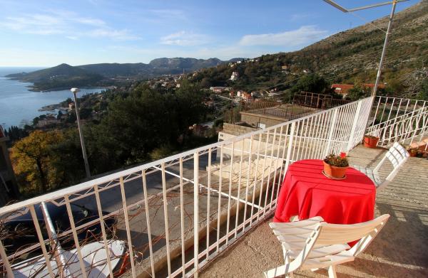 Mieszkanie Nany jest odnowione, w pełni umeblowane mieszkanie, aby pomieścić 4 do 6 osób. Położony w cichej okolicy na wzgórzu, z którego roztacza się widok na zatokę i parafii morza. Mieszkanie posiada dużą w pełni wyposażoną kuchnię i duży pokój dzienny z jadalnią. Dodatkowe łóżko dla 2 osób znajdujących się w salonie. Mieszkanie składa się z dwóch pokoi, jeden z podwójnym łóżkiem i druga z dwoma pojedynczymi łóżkami które mogą być połączone ze sobą jeden duży. Łazienka wyposażona jest w wannę, pralkę, suszarkę do włosów i innych potrzeb. Balkon biegnie długość całego domu, dwie sypialnie i pokój dzienny z balkonem. Na balkonie siedzenia lounge i grillem. Cały apartament jest klimatyzowany. Internet bezprzewodowy jest dostępny w całym mieszkaniu. Prywatny parking na kilka samochodów w przedniej części mieszkania. Młyn Centrum i plaża są w odległości 10 minut spacerem. Dubrownik Lotnisko jest 10 km od hotelu, a przystanek autobusowy znajduje się 250 m od hotelu. Dubrownik znajduje się 10 km od apartamentu.