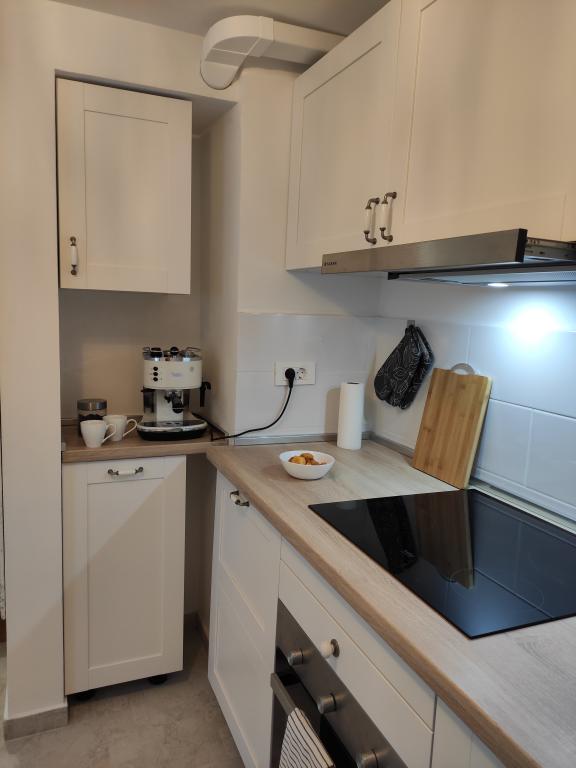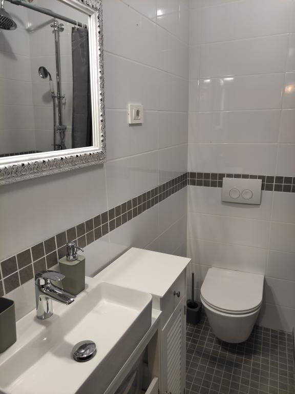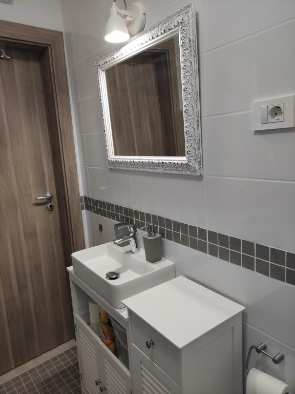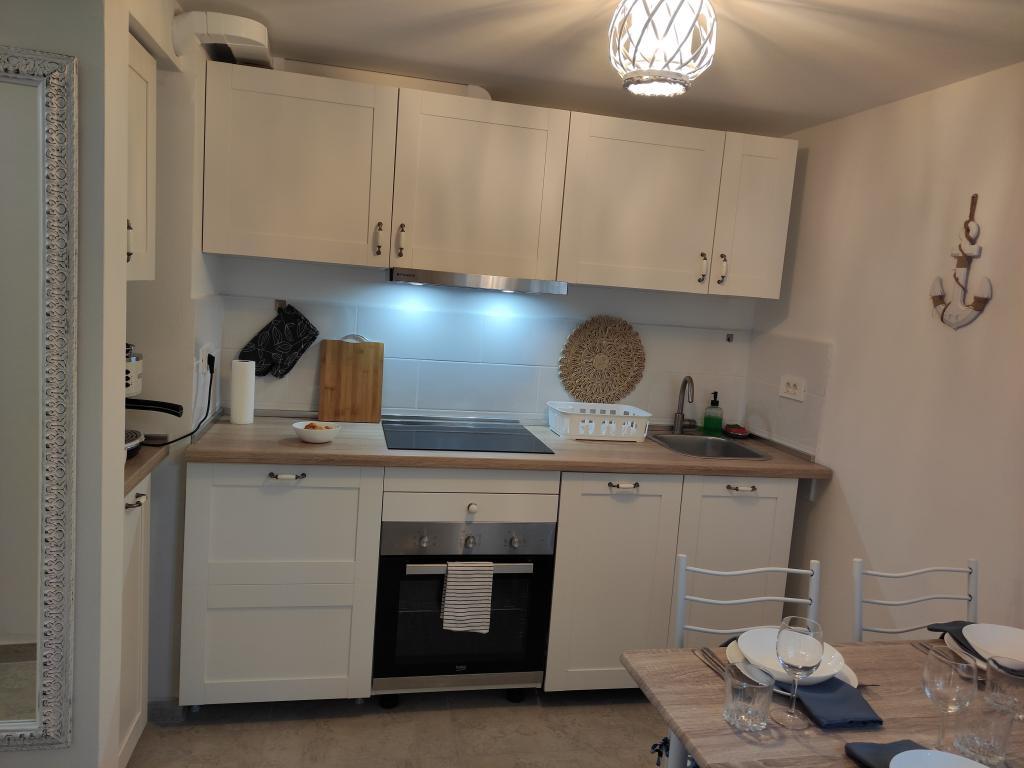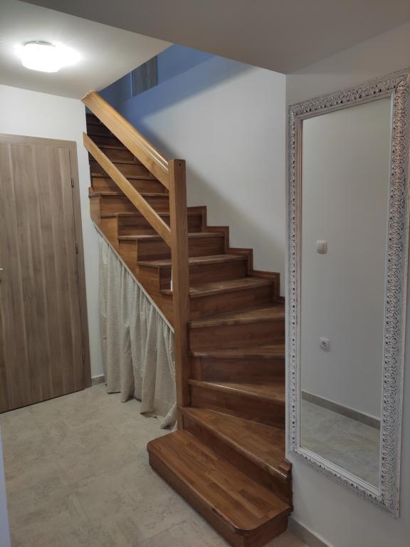 Mieszkanie ma dwie sypialnie, łazienkę, kuchnię i duży balkon. Pojemność wynosi 4 osoby. Pokoje są klimatyzowane, posiadają internet, android TV oraz kącik z fotelami do wypoczynku. Jedno znajduje się na parterze, drugie na pierwszym piętrze apartamentu. Kuchnia jest nowocześnie wyposażona i obejmuje lodówkę, zamrażarkę, piekarnik, kuchenkę, ekspres do kawy, kompletne przybory kuchenne i zmywarkę. Łazienka wyposażona jest w niezbędny sprzęt AGD, w tym pralkę. Balkon jest zadaszony i wyposażony w meble ogrodowe. Na podwórku dostępny jest sprzęt do grillowania. Czekamy na Ciebie