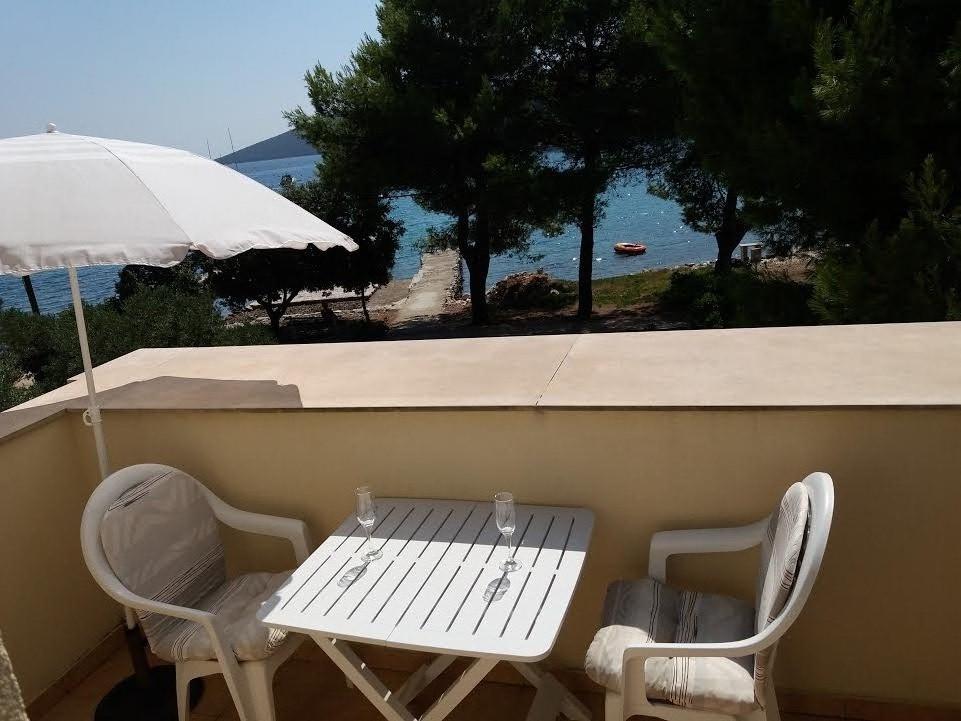 Nowoczesne apartamenty znajdują się na pierwszym piętrze domu znajduje się tuż przy morzu. Każdy apartament posiada osobne wejście. Wspólny taras oddzielone przegrodą. Obiekt otoczony jest lasami sosnowymi i gajami oliwnymi. To jest 5 minut spacerem do miasta i plaży przed budynkiem, a także miejsca do cumowania łodzi. Z obiektu jest parking.