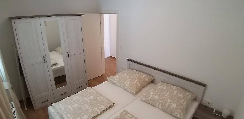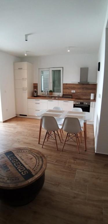 Apartament "MAGNA" położony jest w bezpośrednim sąsiedztwie plaży miejskiej, 1000 m od centrum miejscowości i oferuje piękny widok na morze. Mieszkanie ma powierzchnię 60 m2, posiada dwie sypialnie, w których może nocować do 5 osób dorosłych. Mieszkanie znajduje się na parterze (widocznym na zdjęciu) i goście mają dostęp do tarasu z grillem. Parking znajduje się przed domem i jest wliczony w cenę. Zwierzęta nie są akceptowane.