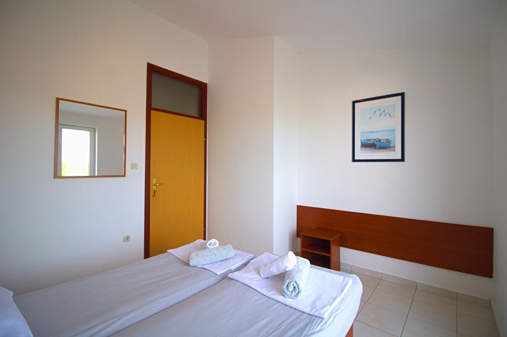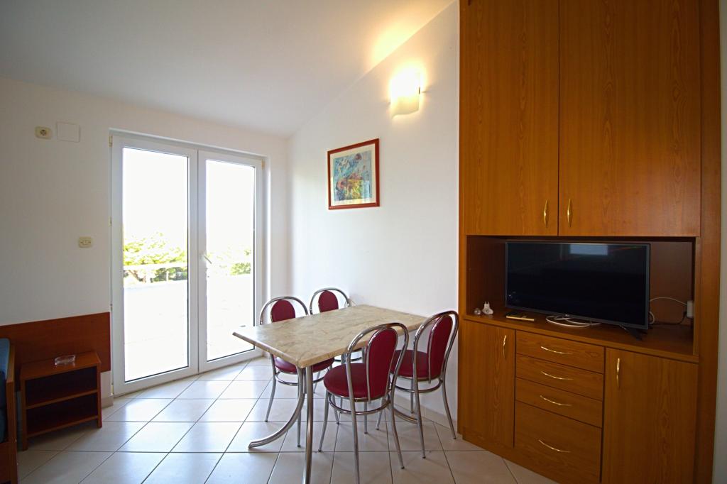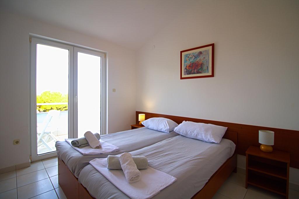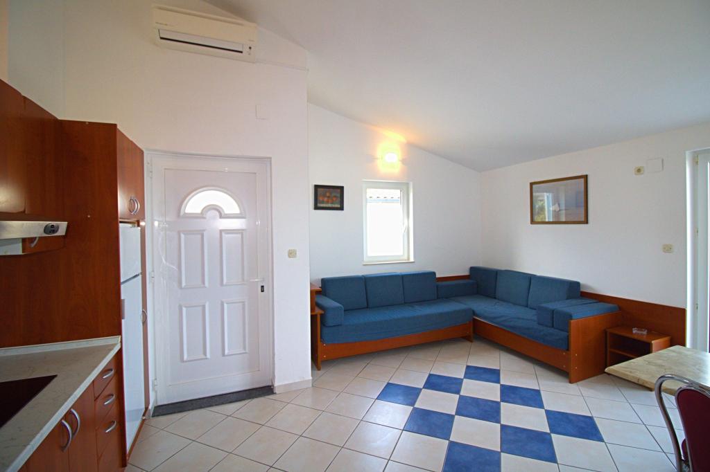 Apartament położony jest w spokojnej i cichej okolicy, niedaleko piaszczystej plaży Slanica. Apartament składa się z jednej sypialni, w której mogą spać 2 osoby dorosłe. W salonie znajduje się dodatkowe łóżko, na którym może spać dwójka małych dzieci lub jedna osoba dorosła. W apartamencie znajduje się łazienka z prysznicem. Apartament posiada taras z widokiem na morze. Obiekt oddalony jest o 10 minut spacerem od centrum miasta i 500 metrów od najbliższej plaży. Przed domem znajduje się bezpłatny parking dla gości apartamentu oraz grill, z którego można korzystać bezpłatnie. Apartament jest klimatyzowany i dysponuje bezpłatnym WiFi oraz kuchnią z lodówką, kuchenką i kuchenką mikrofalową.