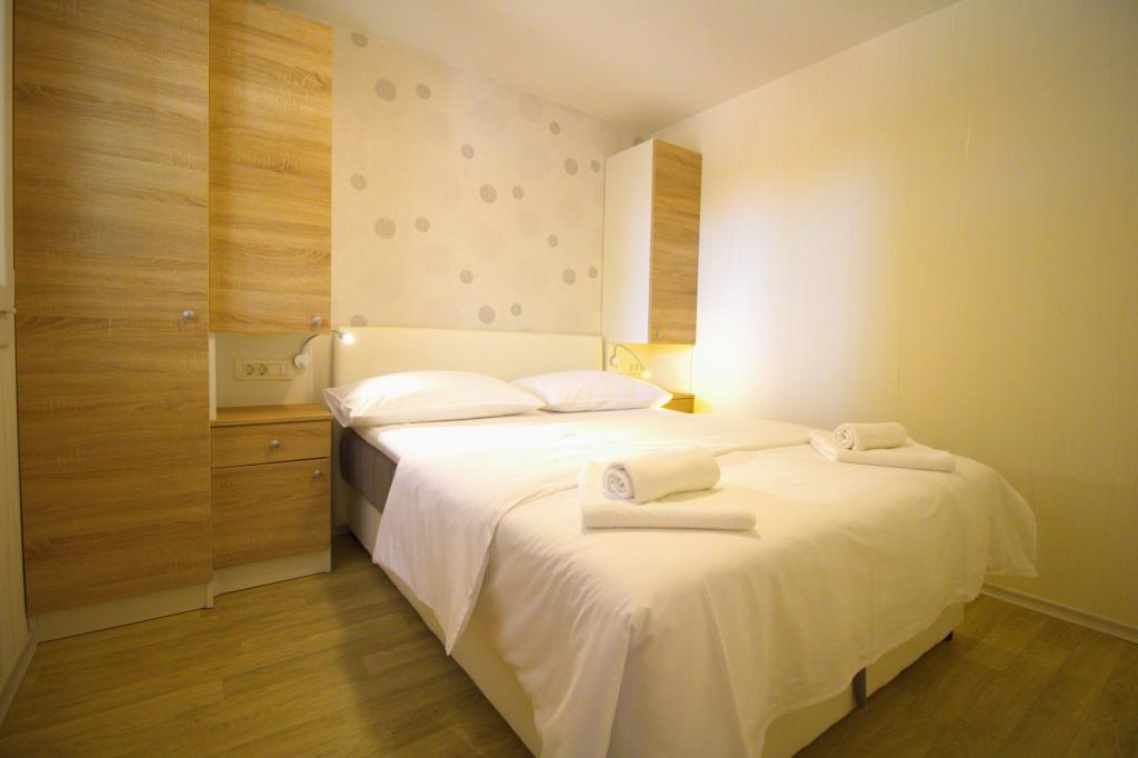 Przyczepa stacjonarna z dwiema sypialniami znajduje się w pobliżu piaszczystej plaży Slanica, zaledwie 50 metrów od morza. Domek mobilny jest wyposażony w kuchnię, lodówkę, zmywarkę, bezprzewodowy internet. W sypialniach mogą spać 4 osoby dorosłe, w salonie znajduje się kanapa, która może służyć jako dodatkowe łóżko do spania. Przed apartamentem znajduje się piękny taras z widokiem na morze w naturalnym cieniu. Parking na jeden samochód znajduje się przed domem i jest bezpłatny.