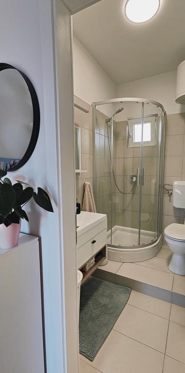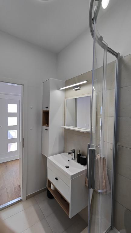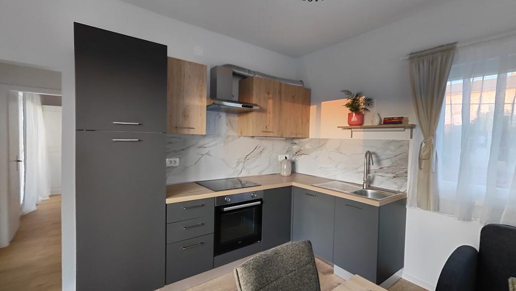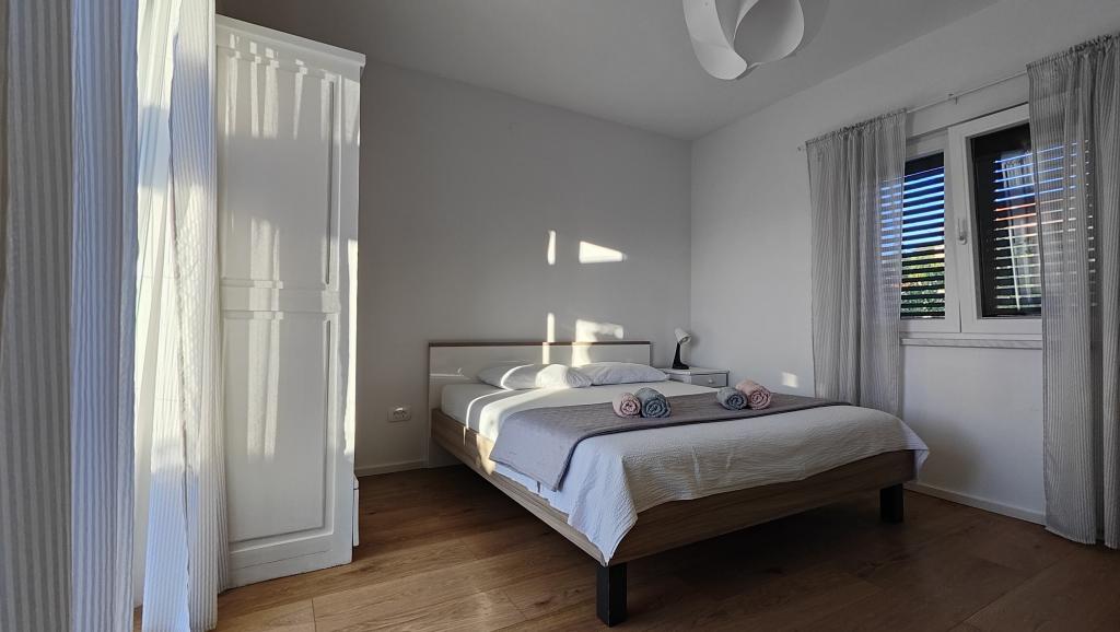 Całkowicie odnowiony apartament w zacisznym otoczeniu, z dużym tarasem i widokiem na morze, 300 m od piaszczystej plaży Slanica. Do dyspozycji gości jest grill i miejsce do spotkań towarzyskich na podwórku, a także bezpieczne miejsce parkingowe. Apartament posiada dużą, oddzielną sypialnię. Kuchnia jest w pełni wyposażona, z ekspresem do kawy, zmywarką, dużą lodówką i zamrażarką. Dostępna jest również pralka.