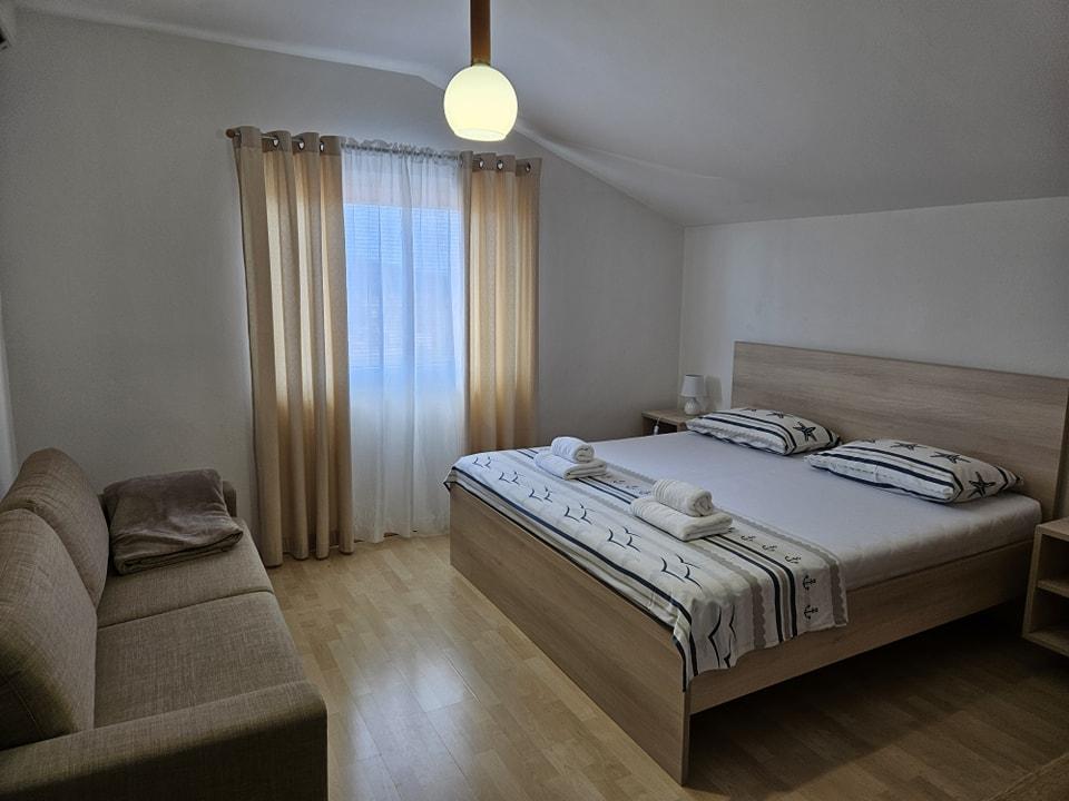 Nowocześnie urządzony apartament położony jest 600 metrów od piaszczystej plaży Slanica, jednej z najpiękniejszych w okolicy. Apartament o powierzchni 100 m² oferuje 3 sypialnie, 2 łazienki, kuchnię ze stołem jadalnym, duży taras, klimatyzację w każdym pokoju, Wi-Fi, telewizor, telewizję satelitarną, zmywarkę, grill, strzeżony parking na 2 samochody, ogród i altanę do relaksu. Cena obejmuje pościel, ręczniki, sprzątanie końcowe i podatek turystyczny.