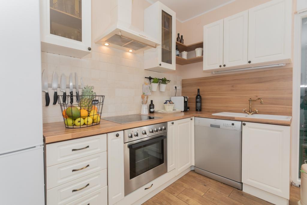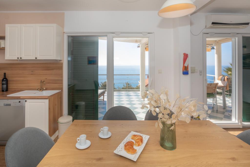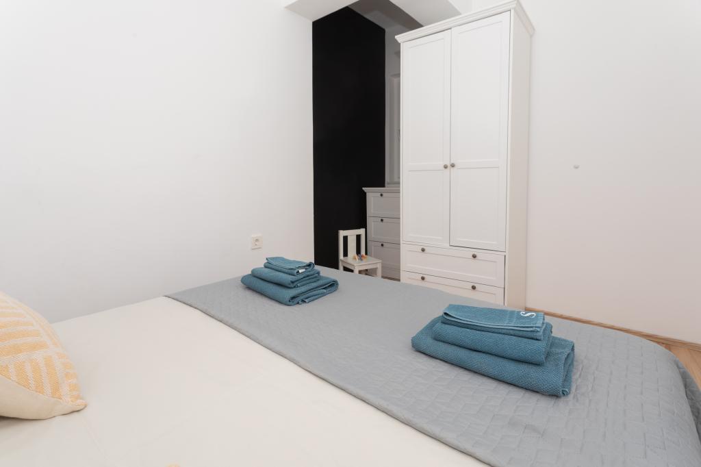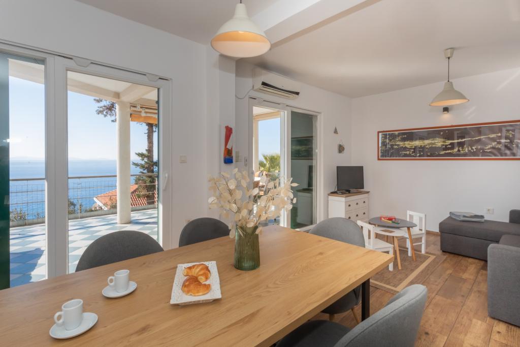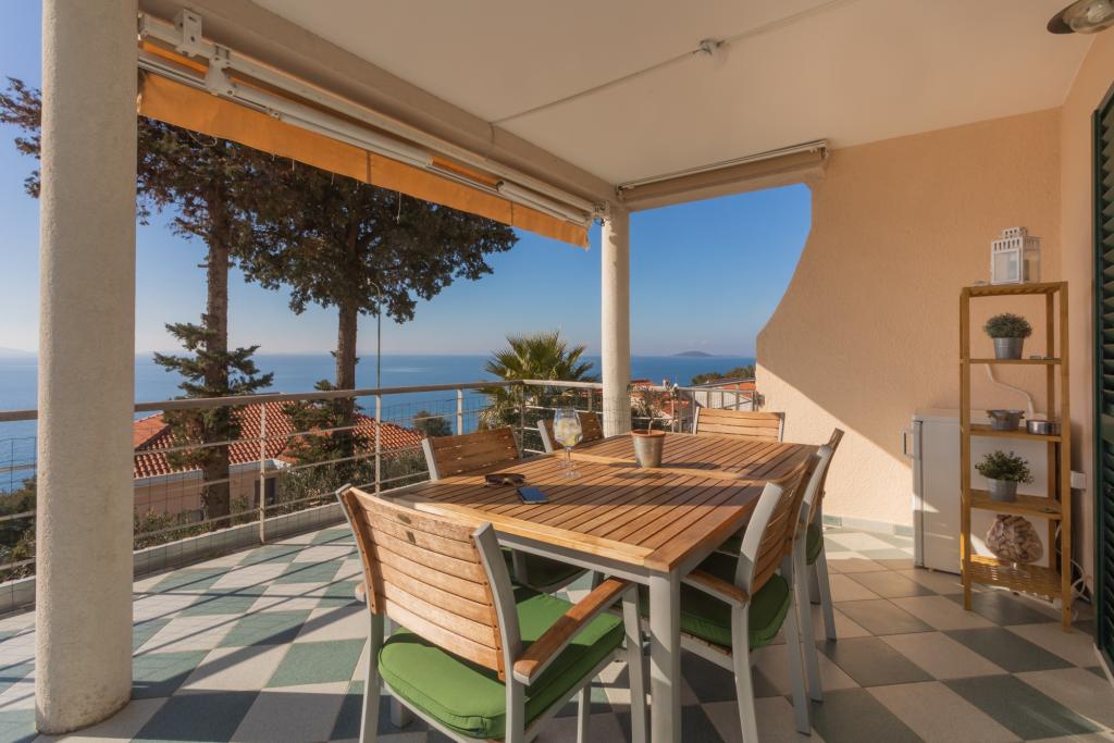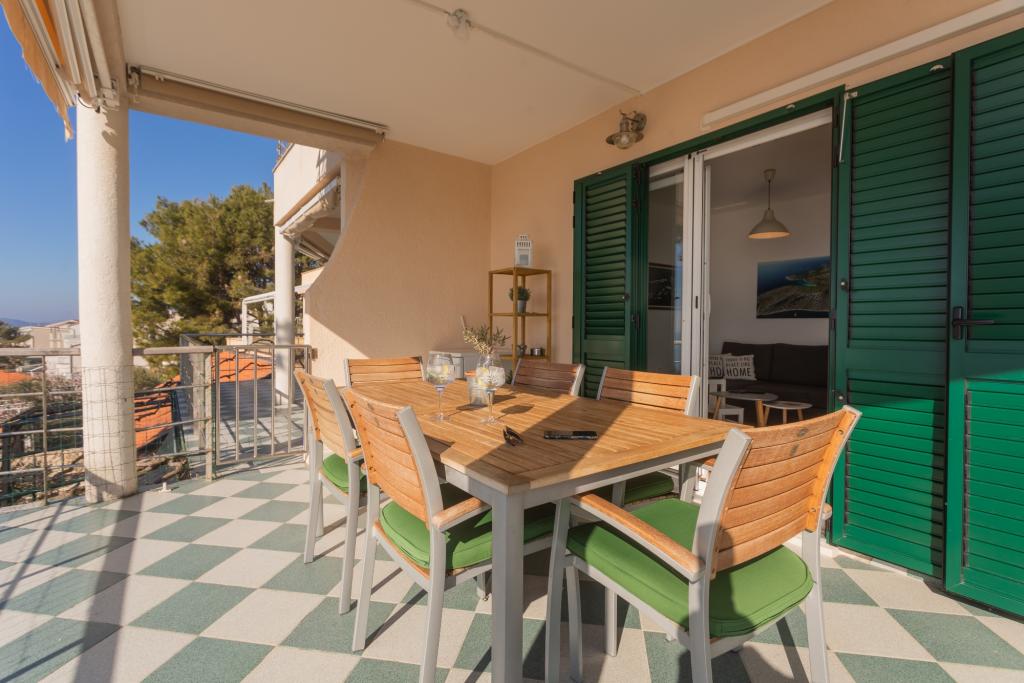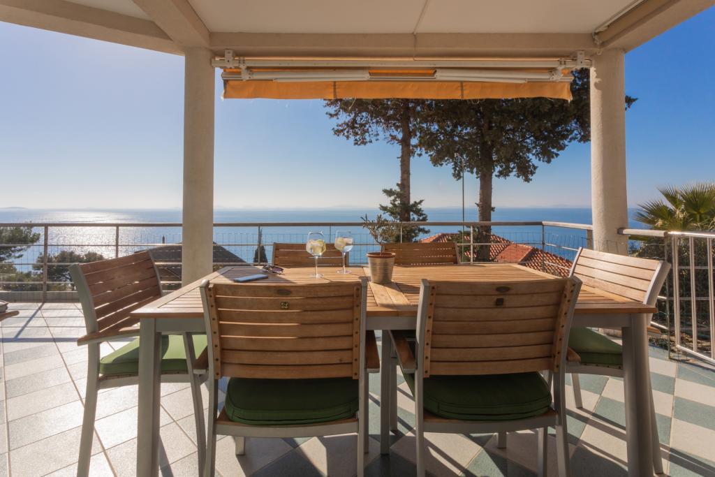Nowocześnie urządzony apartament z pięknym widokiem na morze, zaledwie 40 m od morza, o powierzchni 65 m². Apartament posiada dwie sypialnie dla 4 osób plus dodatkowe łóżko dla jednej osoby, łazienkę, salon, kuchnię z jadalnią oraz piękny taras o powierzchni prawie 25 m². Apartament znajduje się na pierwszym piętrze domu i jest wyposażony w TV/SAT, PS 4, Wi-Fi, klimatyzację, ogrzewanie, piekarnik, czajnik, ekspres do kawy, zmywarkę i pralkę. Przed wejściem znajduje się grill i letnia kuchnia. Parking jest wliczony w cenę. Sam apartament znajduje się w bardzo spokojnej części Murteru, 1100 m od centrum miasta, 40 m od morza i kamienistej plaży, 300 m od piaszczysto-żwirowej plaży Čigrađa i około 800 m od piaszczystej plaży Slanica.