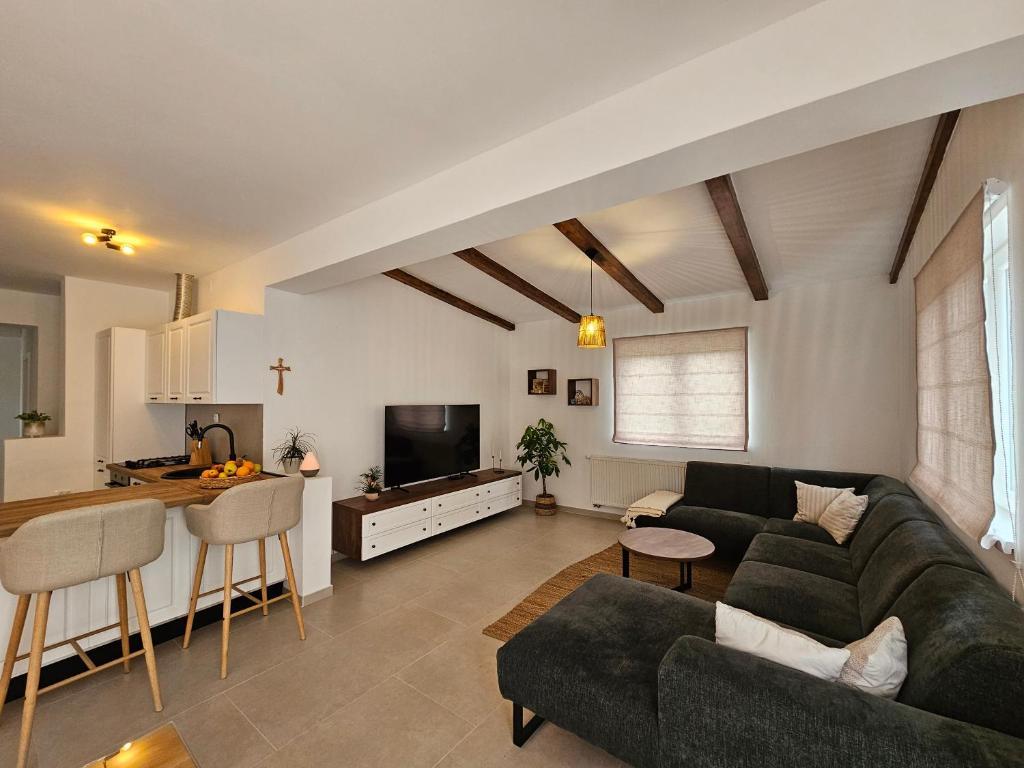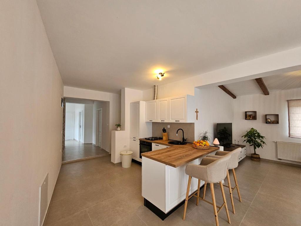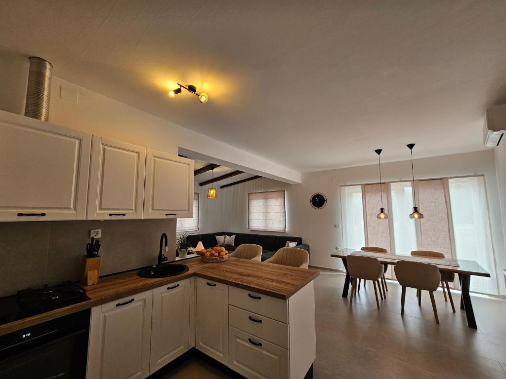 Apartament Una znajduje się na wyspie Murter, w doskonałej lokalizacji, zaledwie kilka minut spacerem od centrum. Położony jest przy cichej ulicy, idealnej na relaksujący wypoczynek, a jednocześnie w pobliżu restauracji, sklepów i wszystkich ważnych udogodnień. Ten przestronny apartament oferuje w pełni wyposażoną kuchnię z jadalnią, salon, dwie wygodne sypialnie i nowoczesną łazienkę. Do dyspozycji Gości jest również duży, prywatny taras, idealny na poranną kawę lub wieczorne spotkania towarzyskie. Apartament jest klimatyzowany, wyposażony w bezpłatne WiFi, telewizor z płaskim ekranem i wszystkie niezbędne sprzęty AGD, zarówno na dłuższy, jak i krótszy pobyt. Na terenie obiektu dostępny jest również prywatny parking. Dzięki bliskości słynnych plaż Murter, czystego morza i urokliwej starówki, Apartament Una to doskonały wybór dla rodzin, przyjaciół i każdego, kto marzy o beztroskich wakacjach na Murterze.