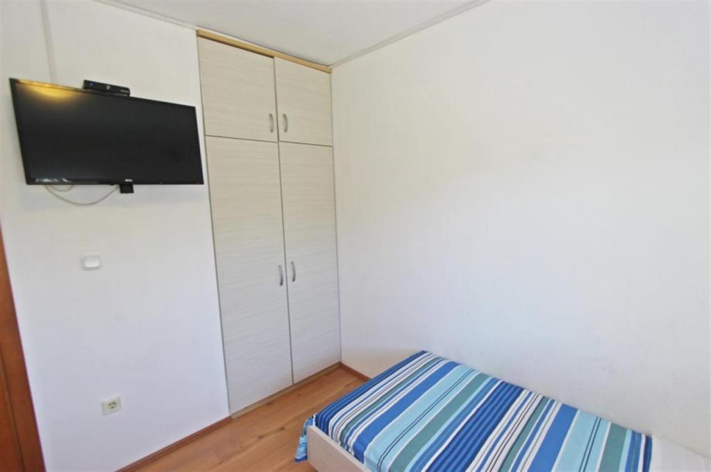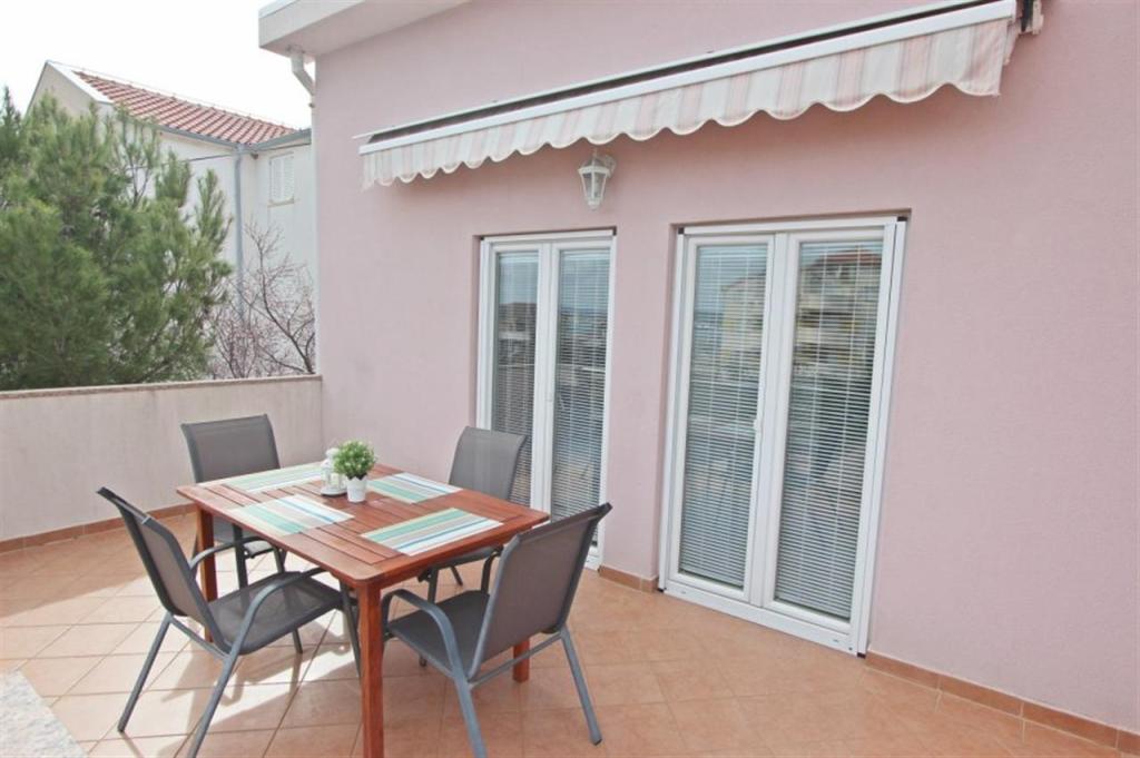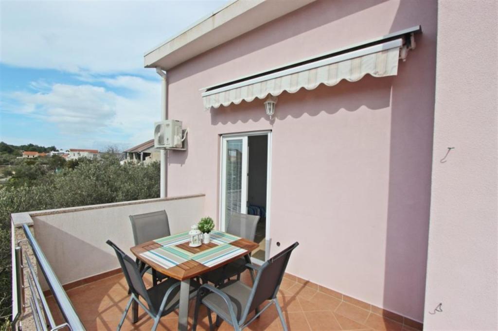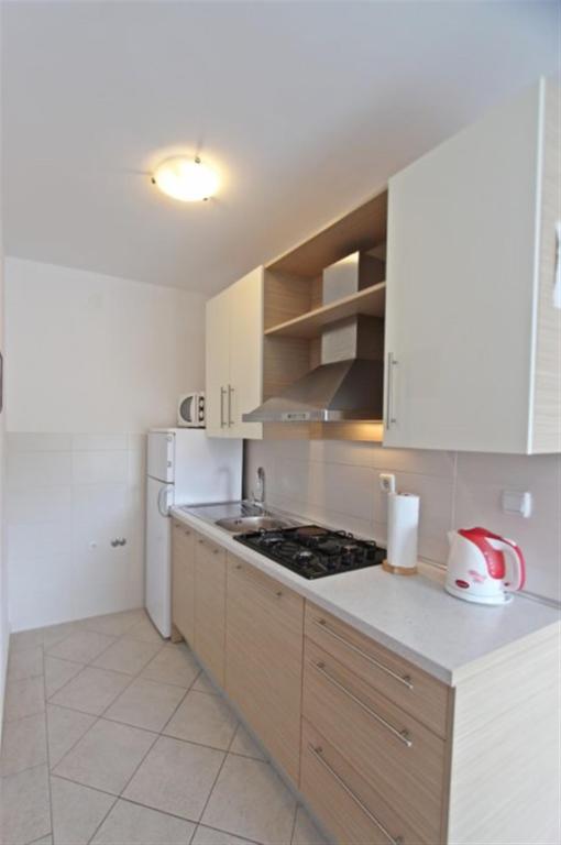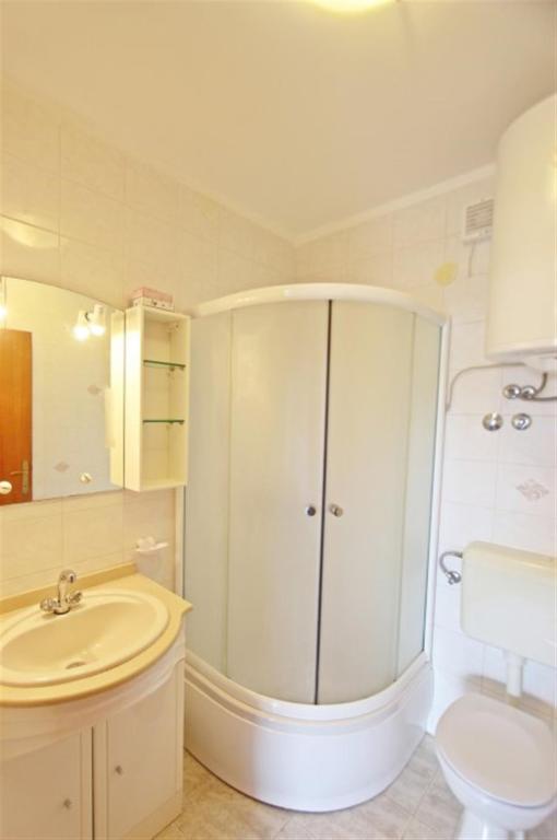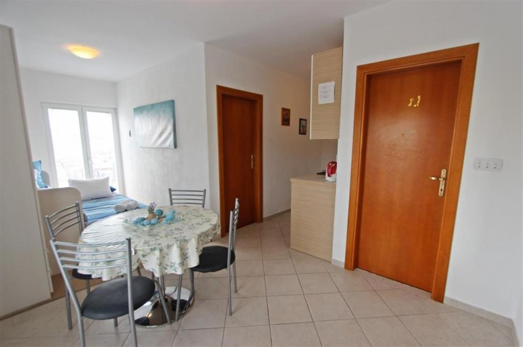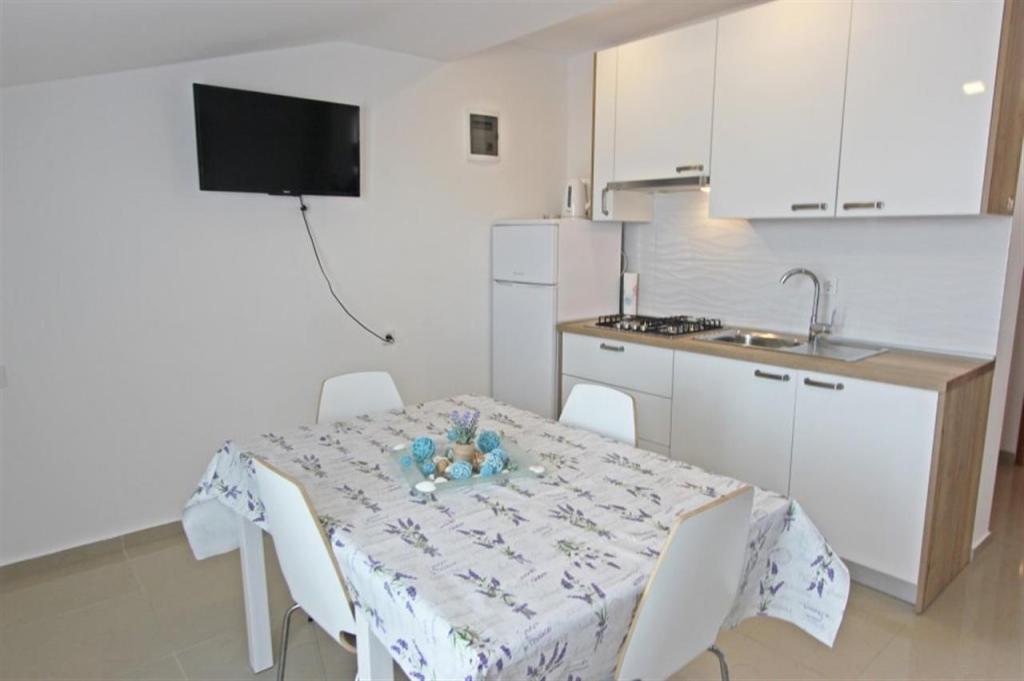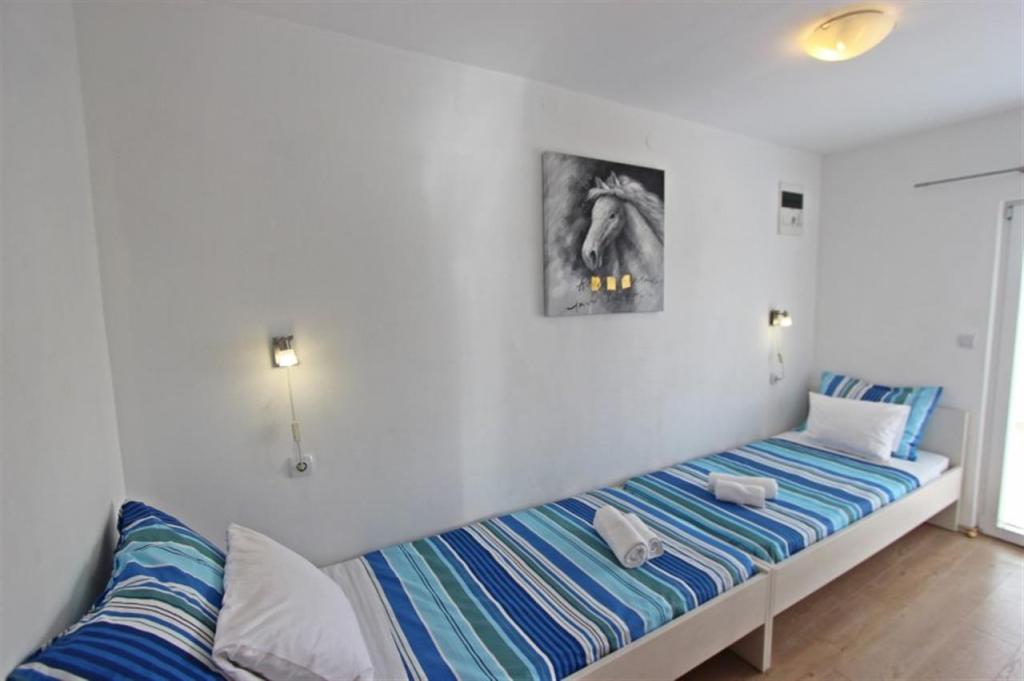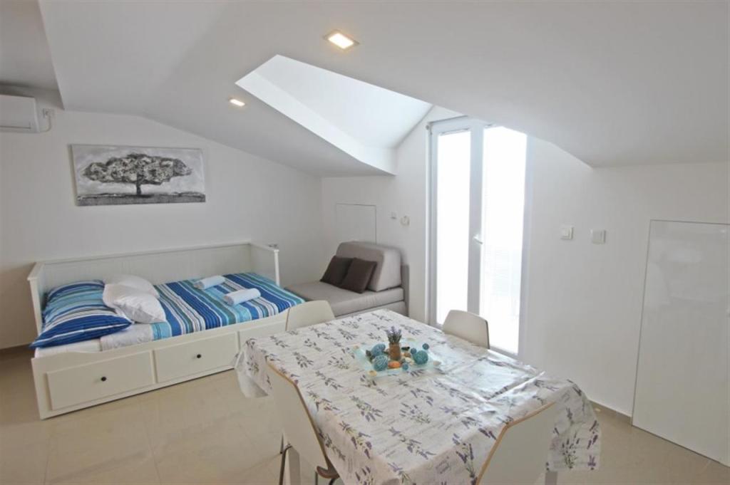 Apartamenty czteroosobowe 2 + 2 lub apartamenty typu studio 2 + 1. Składają się z sypialni (jedno łóżko małżeńskie) i pokoju z dwoma pojedynczymi łóżkami (wymiary 200x90) lub sypialni i łóżka w salonie, natomiast apartamenty typu studio składają się z łoża małżeńskiego z dostawką, kuchni, łazienki i dużego tarasu (15m2 / 18m2). Również na parterze znajduje się pomieszczenie z pralką, z której goście mogą korzystać. Apartamenty wyposażone są w TV i klimatyzację, wi-fi, mikrofalówkę i lodówkę z zamrażarką. Przed apartamentem mamy grill na świeżym powietrzu, z którego goście mogą korzystać w dowolnym momencie. Parking jest zapewniony i znajduje się na podwórku. Odległość do pierwszej plaży i sklepów wynosi 250 m, a do centrum 1 km