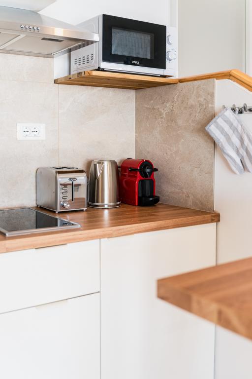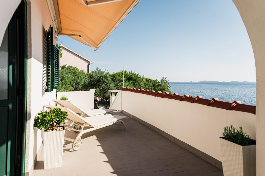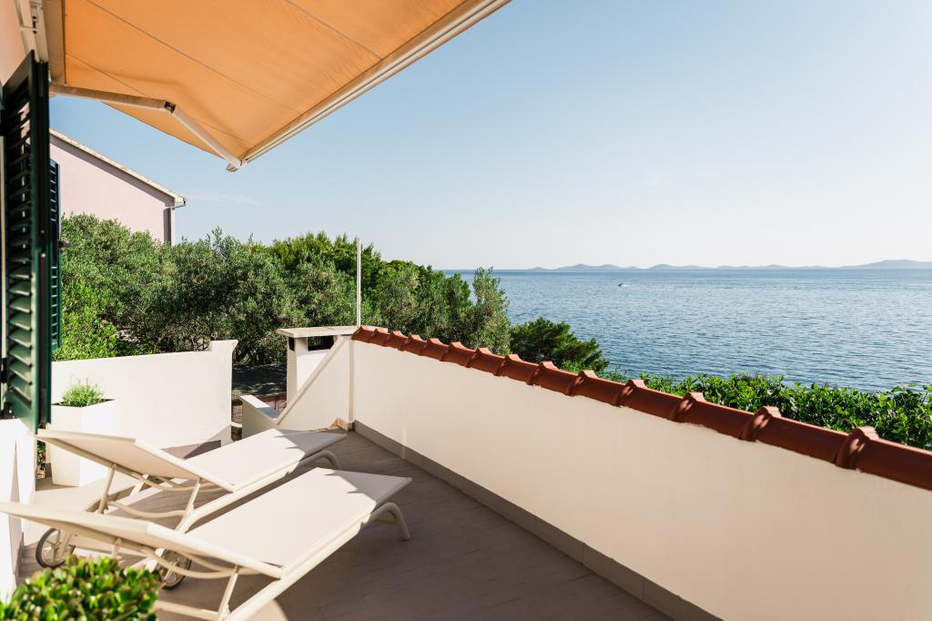 Oferujemy dwa nowocześnie urządzone apartamenty w świetnej lokalizacji, zaledwie 30 metrów od morza. Apartamenty położone są w spokojnej okolicy Murteru, idealnej na wakacje. Bezpłatny parking dla gości apartamentów znajduje się tuż przed budynkiem. Goście mają dostęp do zewnętrznego prysznica i leżaków. Plaża Čigrađa oddalona jest od obiektu o 5 minut spacerem, a plaża Slanica – o 15 minut spacerem. Z tarasów obu apartamentów roztacza się piękny widok na morze. Apartamenty są w pełni wyposażone, co gwarantuje przyjemny pobyt.