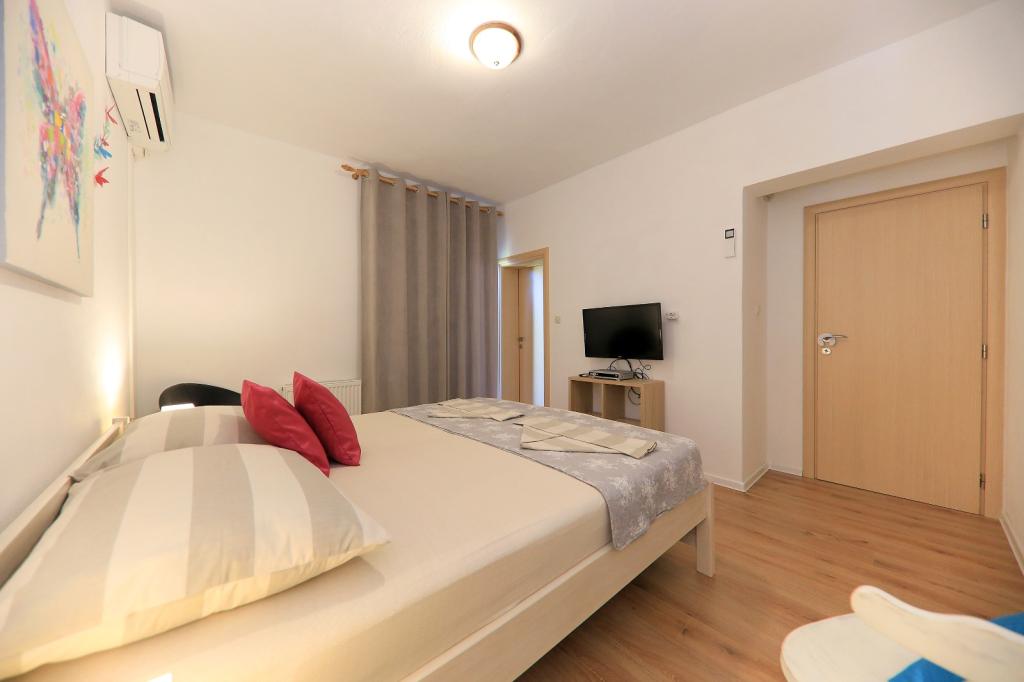 Apartamenty Filip znajdują się w miejscowości Murter na wyspie Murter. Położony w zacisznej części miasta zapewni Państwu wypoczynek i spokój. Wszystkie apartamenty są świeżo wyremontowane, klimatyzowane, wyposażone w czajnik, ekspres do kawy oraz strzeżony parking przed domem. Prawie wszystkie z nich oferują piękny widok na morze, Kornaty i zatokę Murter w Hramina. Apartamenty znajdują się w pobliżu plaży Slanica - 5 minut spacerem, w tej samej odległości od nowo wyremontowanej plaży Luka. Jeśli potrzebujesz więcej informacji na temat samego zakwaterowania, miejsca Murter, skontaktuj się z nami za pośrednictwem aplikacji WhatsApp i Viber