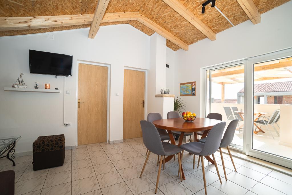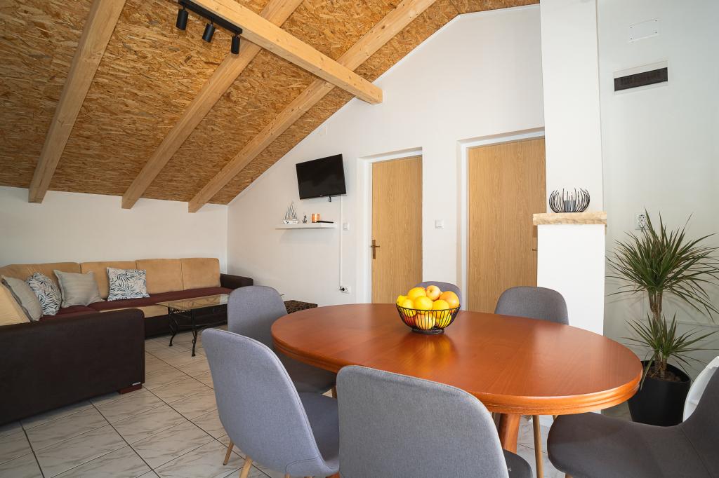 Oferujemy komfortowe apartamenty dla 4 do 6 osób. Każdy apartament posiada w pełni wyposażoną kuchnię, łazienkę, salon, 2 sypialnie i balkon. Do Państwa dyspozycji jest duże podwórko z ogrodem, grillem, stołem i krzesłami oraz schowkiem na rowery lub wózki spacerowe. Apartamenty znajdują się zaledwie 150 metrów od jednej z najpiękniejszych plaż na Adriatyku, aw Murter można znaleźć wszystko, czego potrzeba do przyjemnego wypoczynku. Jest wiele restauracji i kawiarni, kilka supermarketów, piekarni, sklepów mięsnych, bazarów, przychodni, aptek, poczta, bank, bankomaty, stacja benzynowa, kościół, kino, przystań, kluby nurkowe, boiska sportowe i place zabaw dla dzieci. Możesz wypożyczyć łódź, skuter, motorower lub rower. W ofercie są także wycieczki statkiem do Parku Narodowego Kornati, a w pobliżu znajduje się Park Narodowy Krka. Polecamy również kilka punktów widokowych z pięknym widokiem na to miejsce, okoliczne wyspy i Kornaty. Apartamenty „Hojsak” znajdują się przy wjeździe na Murter. Znajdują się one pomiędzy plażą „Čigrađa”, wzgórzem „Raduč” i starą częścią Murteru „Selo”.