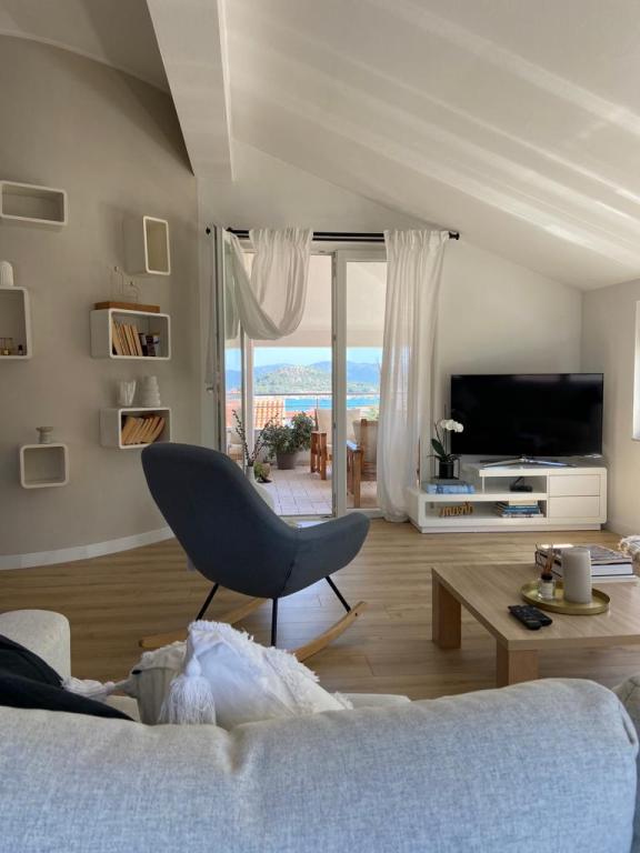 Apartamenty położone są w spokojnej części Murter, 5 minut spacerem od centrum, plaży i sklepów. W pełni umeblowany z widokiem na morze.