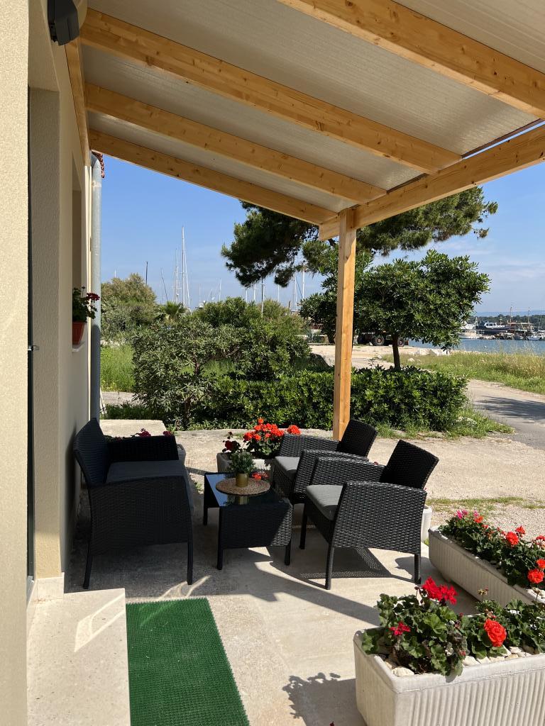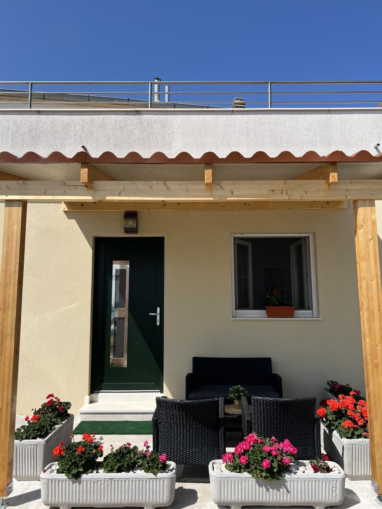 Budynek znajduje się na parterze, zapewnione miejsce parkingowe. Taras znajduje się przed budynkiem z widokiem na morze.