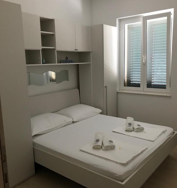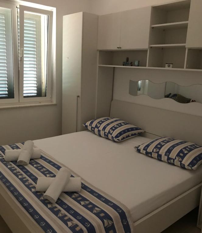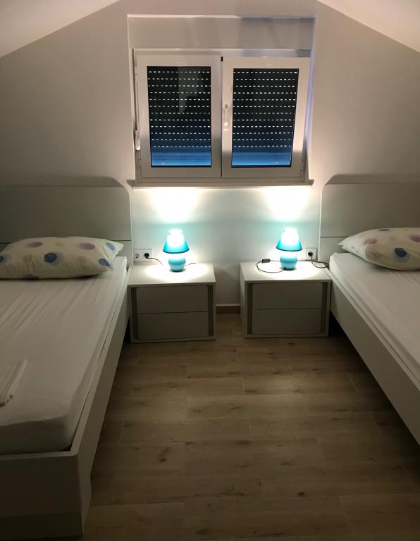 Nowy dom wakacyjny do wynajęcia w Murter. Składa się z 3 sypialni (dla 6-8 osób), dwóch łazienek z prysznicami, salonu, jadalni i kuchni, zadaszonego tarasu w domu. Obok domu jest ogród z dużym tarasem i grillem. Prywatny parking jest zabezpieczony. Dom znajduje się zaledwie 30 metrów od morza, a wszystkie otaczające udogodnienia (centrum miasta, bank, rynek, restauracje, plac zabaw dla dzieci ...) są w pobliżu. Dom jest w pełni umeblowany i zawiera podstawowe naczynia (sztućce, naczynia, piekarnik, płyta kuchenna, pościel, ręczniki), w tym garnki na garnki, czajnik do wody. Wynajęcie domu odbywa się dziennie, a cena zależy od okresu, w którym jest wymagana.