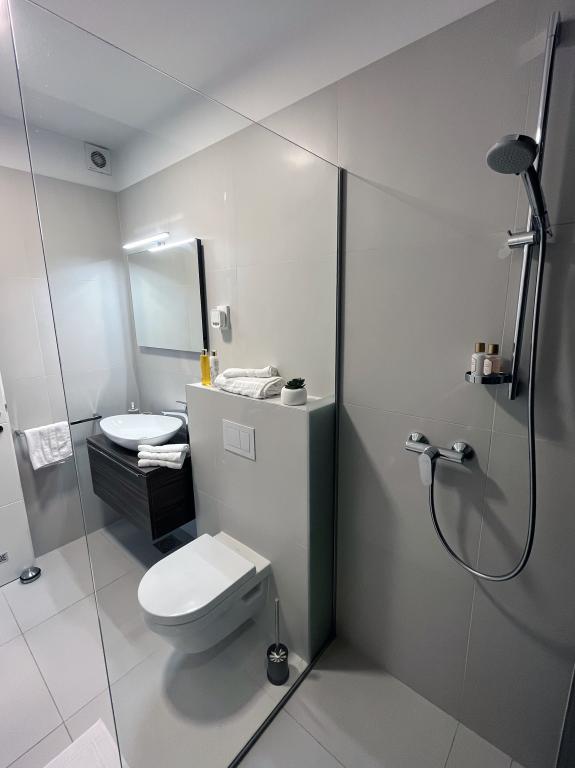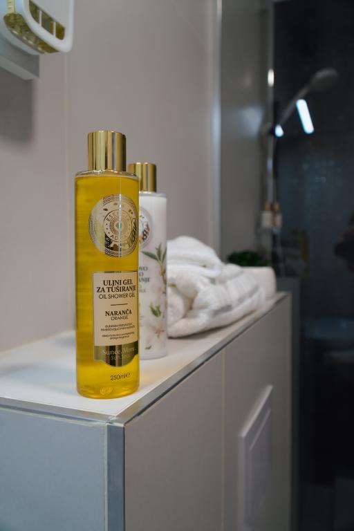 Opłata jest wliczone w cenę. Dokument potwierdzający rezerwację przy rezerwacjiApartamenty Mon Soleil oferują swoim gościom bezpłatny parking, WIFI, klimatyzację, przestronne tarasy z otwartym widokiem na morze i całą wyspę. W pełni wyposażona kuchnia ze zmywarką i lodówką, drink powitalny, część wypoczynkowa oraz łazienka z prysznicem i bezpłatnym zestawem kosmetyków.