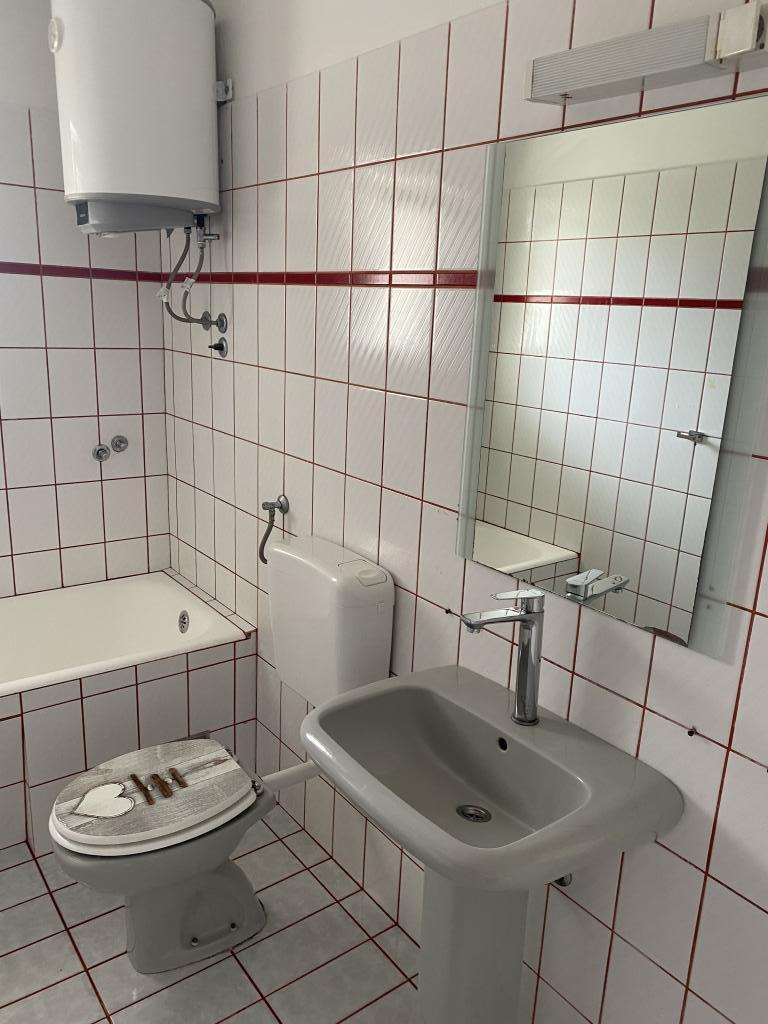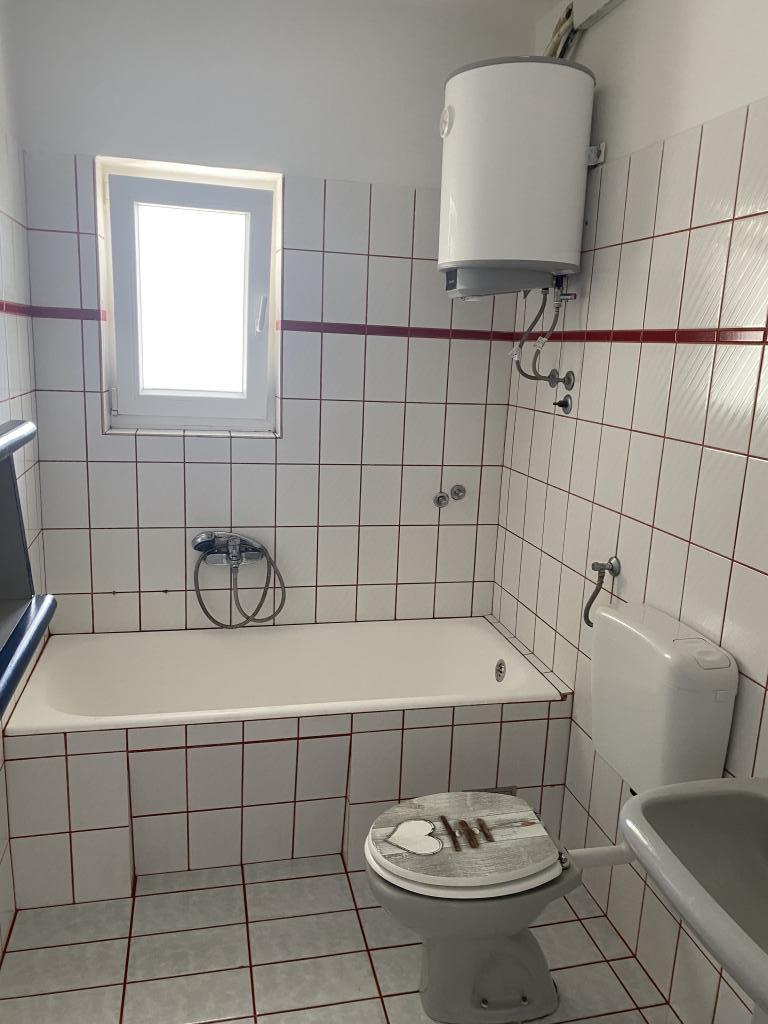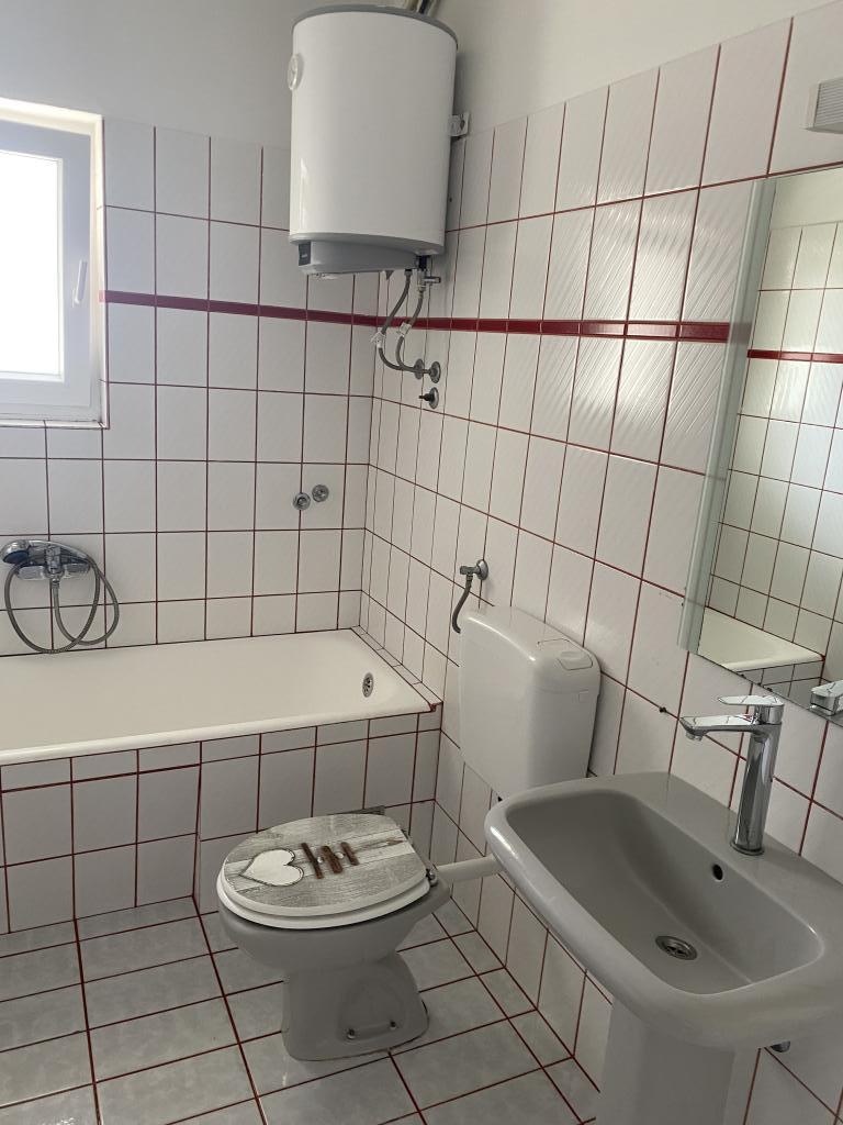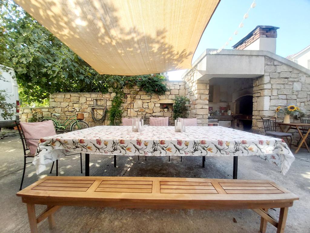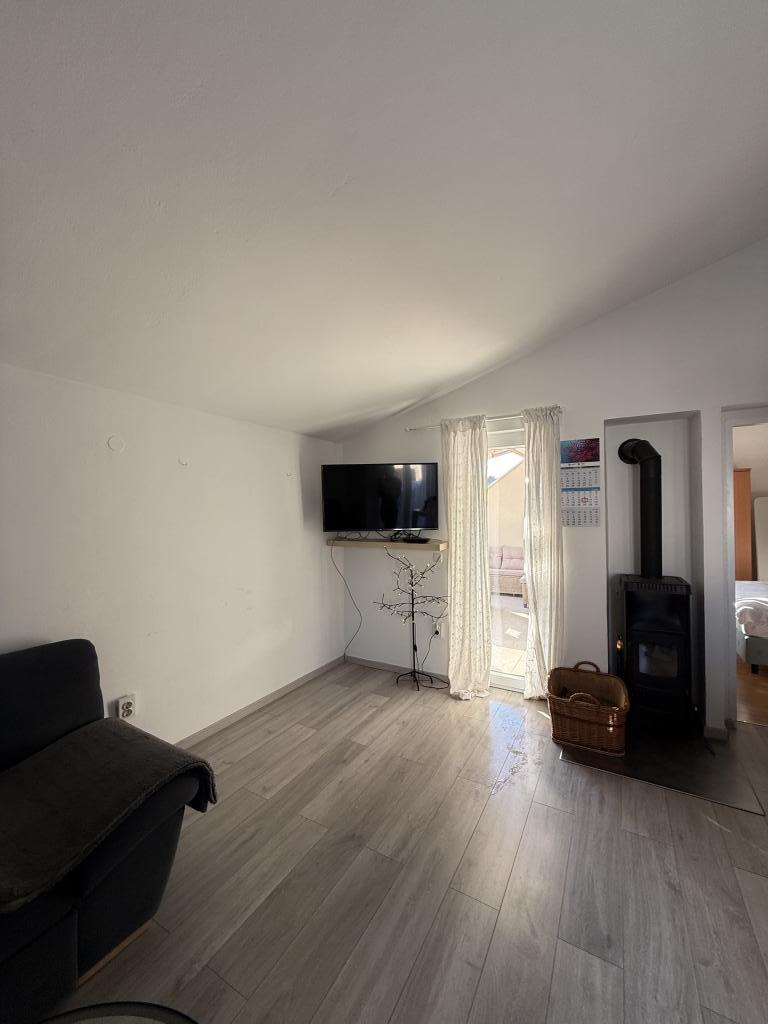 Apartament typu studio z tarasem o powierzchni 12 m². Apartament przeznaczony dla 2 osób. Duże łóżko podwójne, w pełni wyposażona kuchnia, stół jadalny, łazienka. Taras i stół jadalny. Zabezpieczone miejsce parkingowe przed apartamentem na jeden samochód. Blisko plaży. Apartament znajduje się 5 minut spacerem od plaży Slanica i 7 minut spacerem od centrum Murteru.