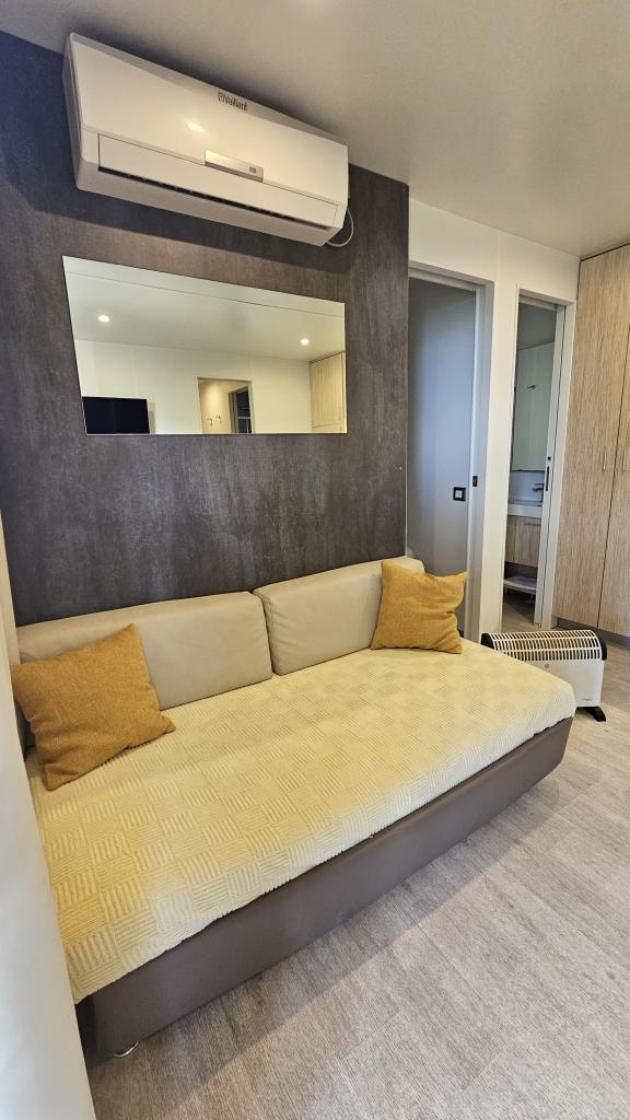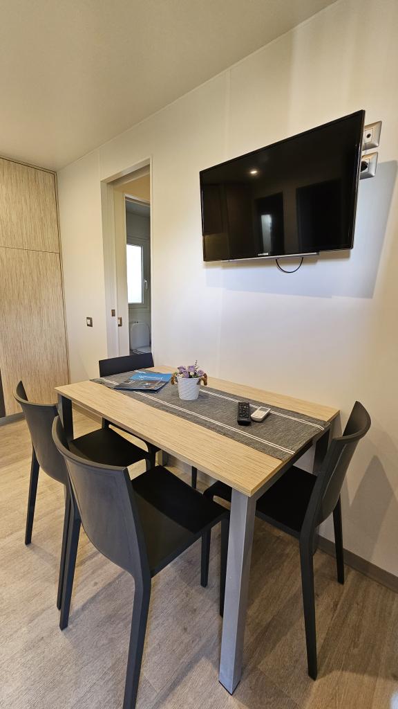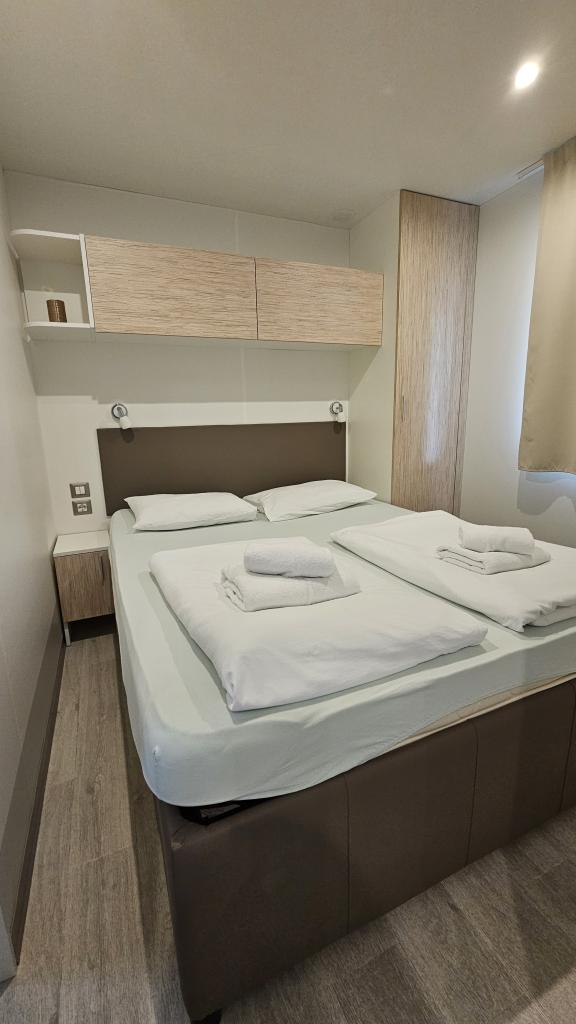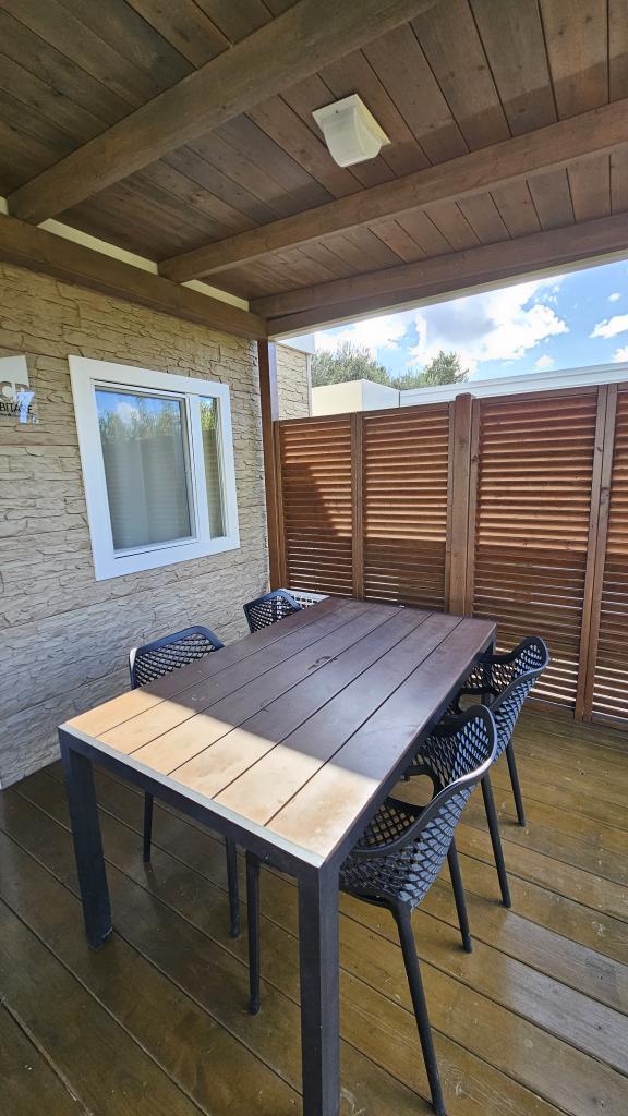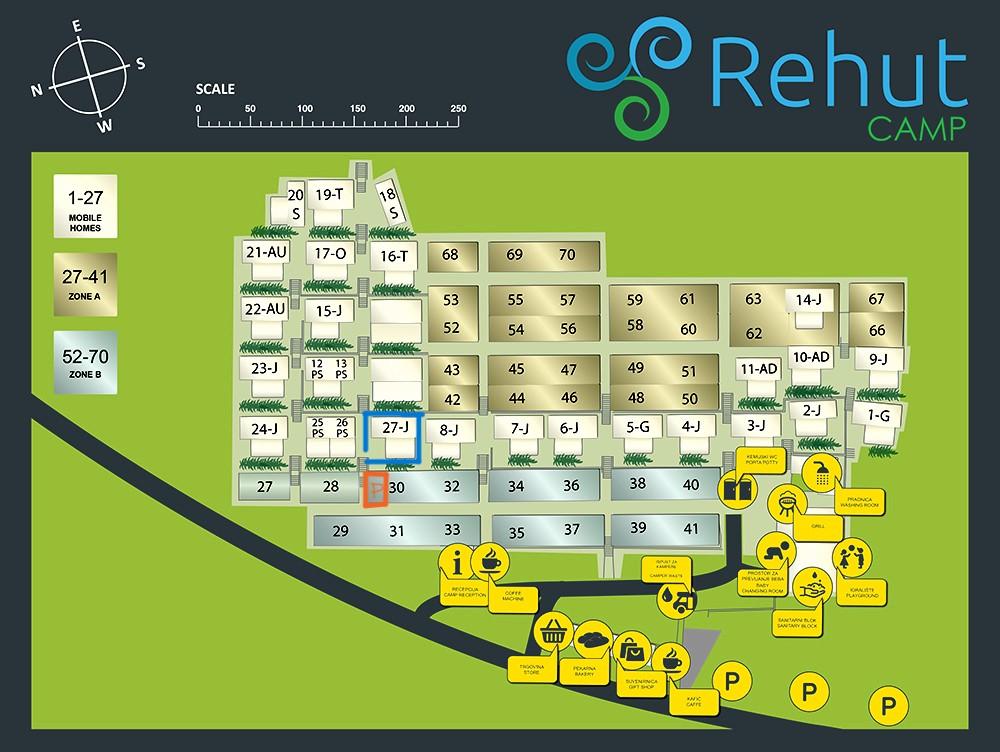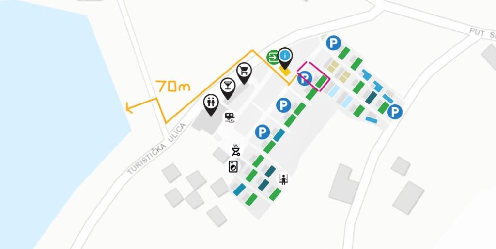 Domek mobilny Tara znajduje się w Camp Rehut, w zatoce Slanica na wyspie Murter. Slanica to najpiękniejsza zatoka na Murterze, znana z turkusowego koloru i krystalicznie czystego morza. Otacza go las sosnowy, co czyni go idealnym miejscem na rodzinny wypoczynek. Boczne części plaży są kamieniste, co zapewnia ucieczkę od tłumów i zabawę w cieniu sosny z widokiem na Park Narodowy Kornati. Plaża żwirowa oddalona jest od domu Tara o 70 m. Mobilhome Tara (35,40 m2) to luksusowo wyposażony mobile home z zadaszonym tarasem (15 m2) ze stołem, krzesłami i leżakiem. Dom posiada wbudowany konwerter i dzięki doskonałej izolacji termicznej jest wygodny w użytkowaniu zarówno latem jak i zimą. Domek posiada bezpłatne Wi-Fi, przestrzeń jest klimatyzowana, wyposażona w pościel i ręczniki, a także posiada bezpłatne miejsce parkingowe przed samym domkiem.