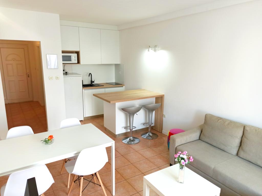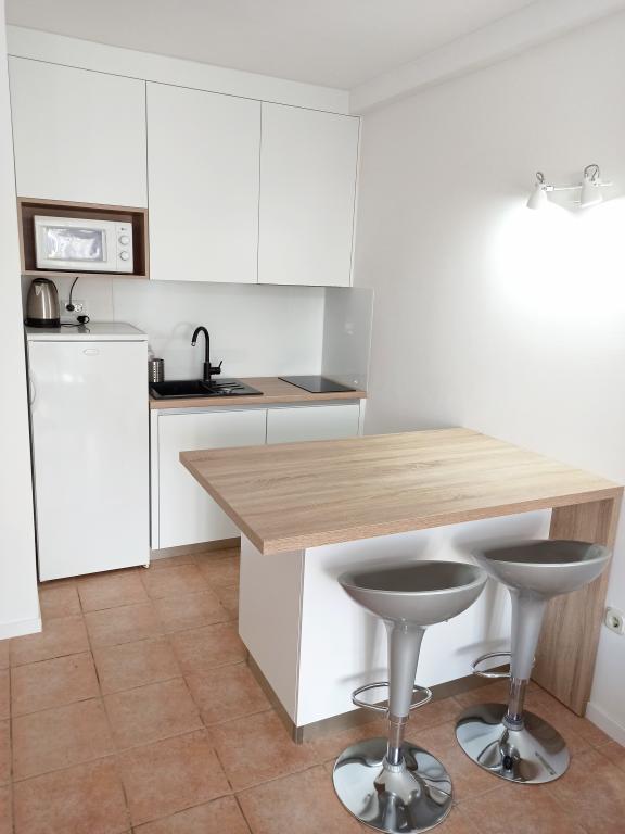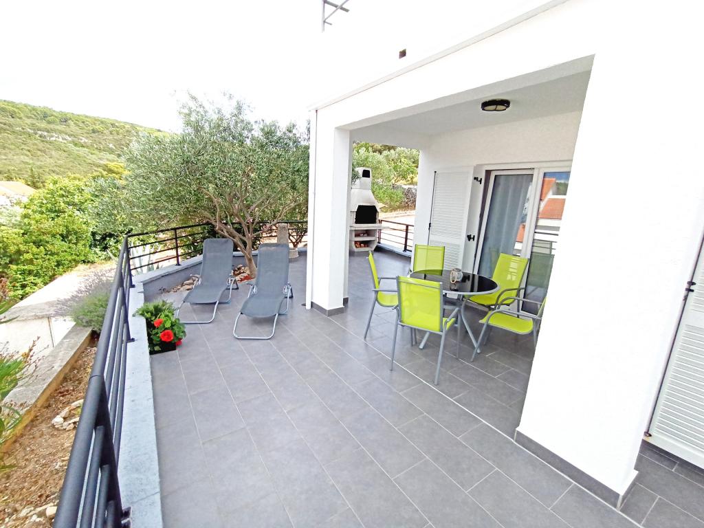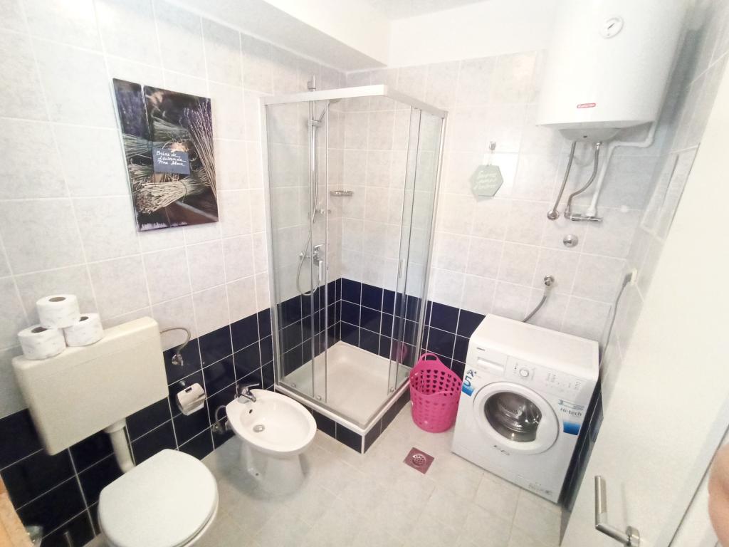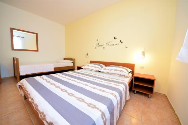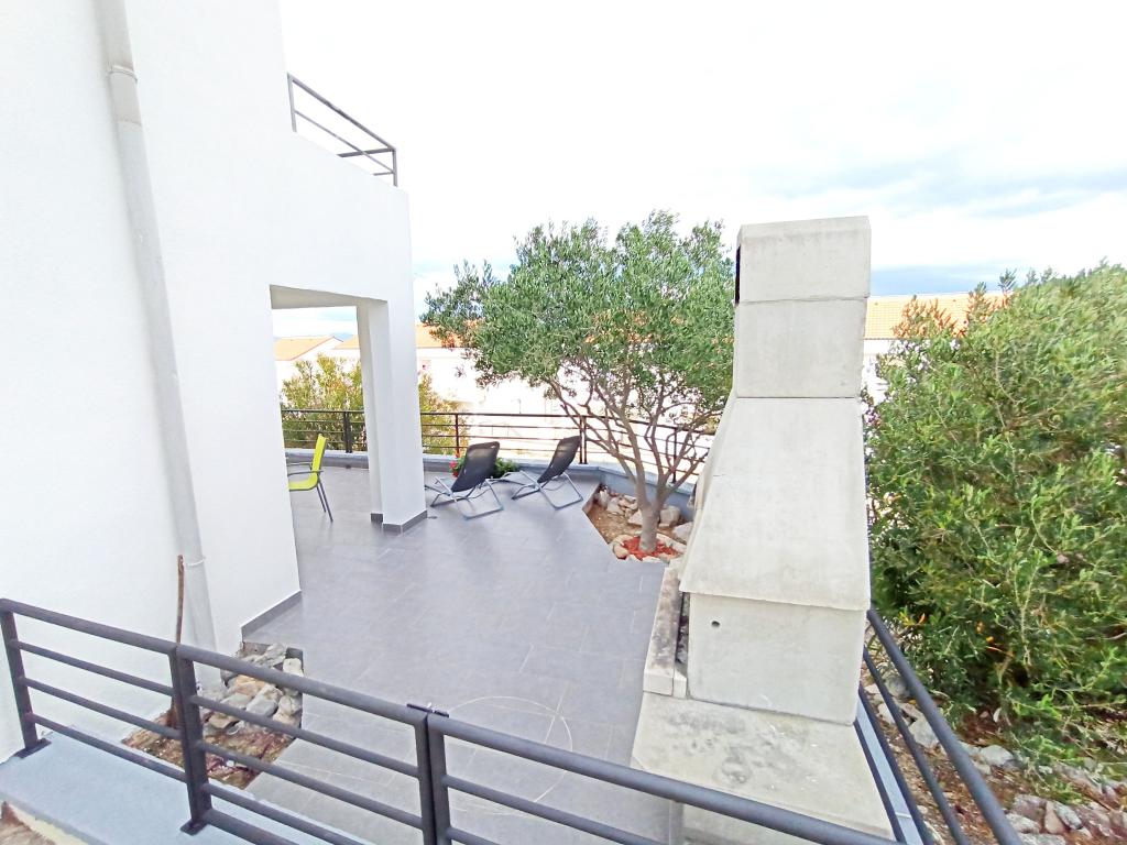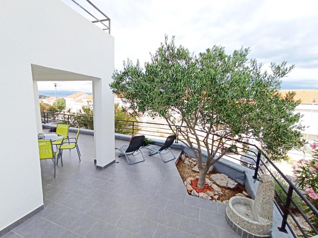 W pełni i nowocześnie wyposażony apartament znajduje się na górnym parterze niewielkiego budynku. Mieszkanie składa się z: Kuchnia: wyposażona we wszystko, co niezbędne do przyjemnego pobytu: - Pokój dzienny z klimatyzacją i telewizorem LCD. W części dziennej znajduje się również sofa, którą w razie potrzeby można zamienić w wygodne łóżko. -Całkowicie nowa kuchnia, w pełni wyposażona (zawiera płytę grzejną, zmywarkę, piekarnik, kompletne naczynia, kuchenkę mikrofalową). Składa się z 2 sypialni: Pokój 1: składa się z jednego łóżka podwójnego i jednego łóżka pojedynczego Pokój 2: składa się z 2 pojedynczych łóżek WC-kabina prysznicowa ze wszystkimi elementami sanitarnymi i pralką Szczególną cechą mieszkania jest duży taras od strony południowej, z której można korzystać przez cały dzień. Na tarasie znajduje się stół do spożywania posiłków na świeżym powietrzu oraz grill. Na tarasie rośnie duże drzewo oliwne, które zapewnia naturalny cień przez cały dzień. Tuż przed apartamentem znajduje się prywatny parking.