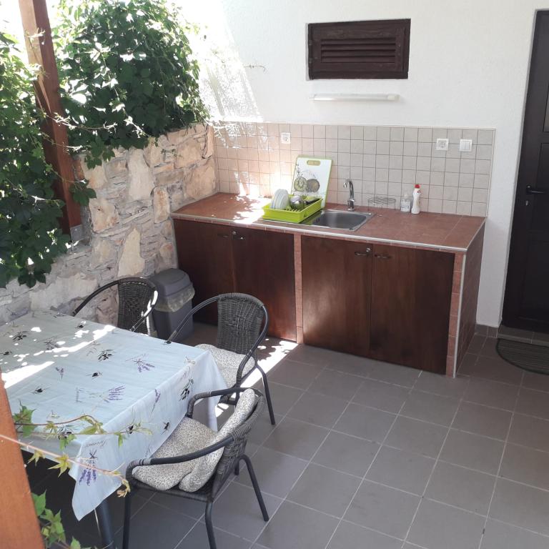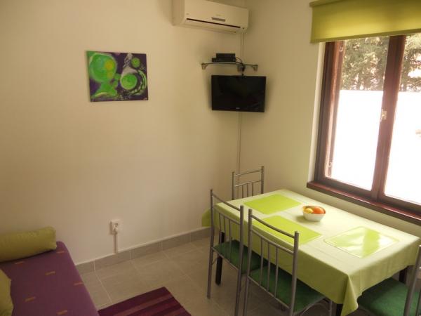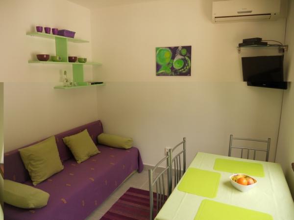 Zielony apartament przeznaczony jest dla 4-5 osób i składa się z dwóch sypialni, salonu, kuchni, łazienki, tarasu i balkonu. Do apartamentu przynależy również balkon i taras, na którym Goście mogą spożywać posiłki na świeżym powietrzu w cieniu. Niebieski apartament przeznaczony jest dla 4 osób i składa się z jednej sypialni, salonu, kuchni, łazienki i tarasu. W niebieskim apartamencie znajduje się również zmywarka. Apartamenty są nowoczesne, niedawno odnowione i stylowo urządzone. Większość mebli jest nowa i wykonana specjalnie dla każdego apartamentu. Plaża znajduje się 200 metrów od apartamentu i można do niej dojść pieszo przez las sosnowy. W pobliżu nie ma ruchliwej drogi. Sklep znajduje się około 50 metrów od apartamentu, a pobliska restauracja również 200 metrów. Na plaży znajduje się również dyskoteka, kilka kawiarni i piekarnia. Oprócz Nečujam, na Šolcie polecamy odwiedzić Stomorską, Maslinicę i liczne ukryte zatoczki.