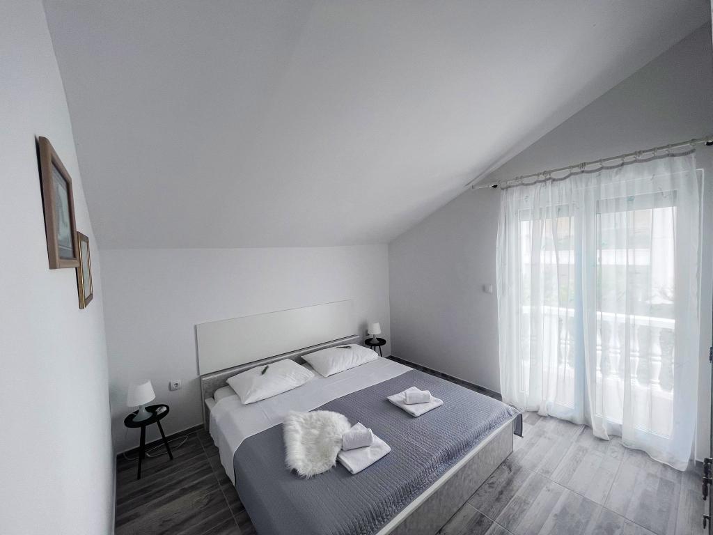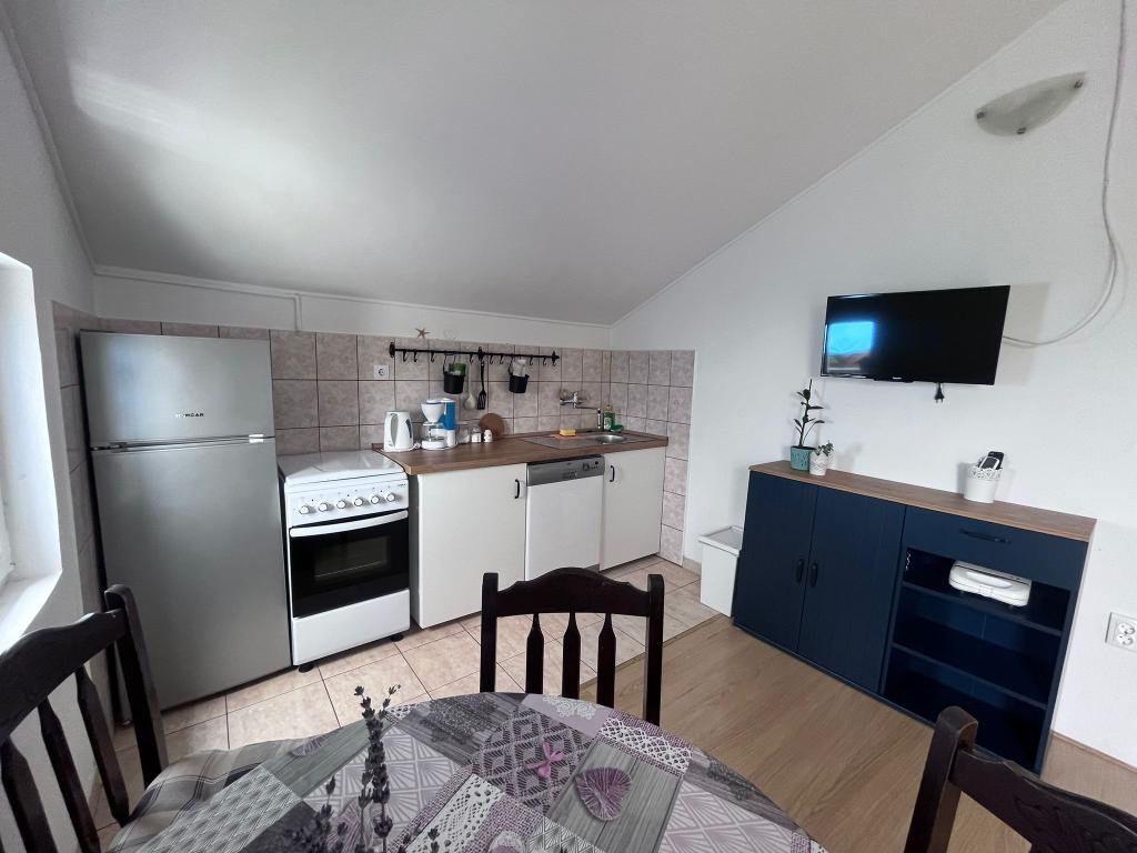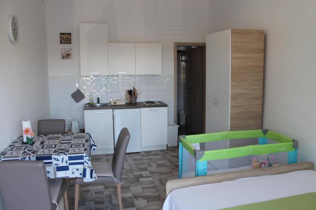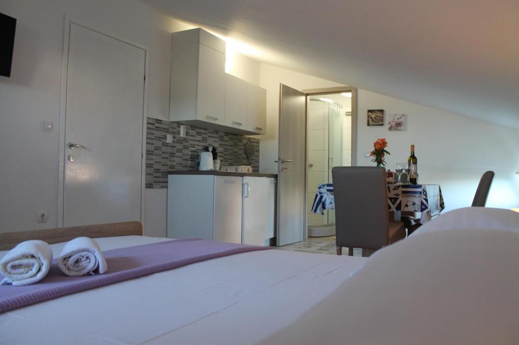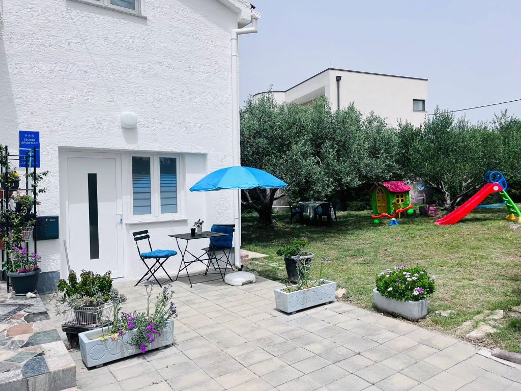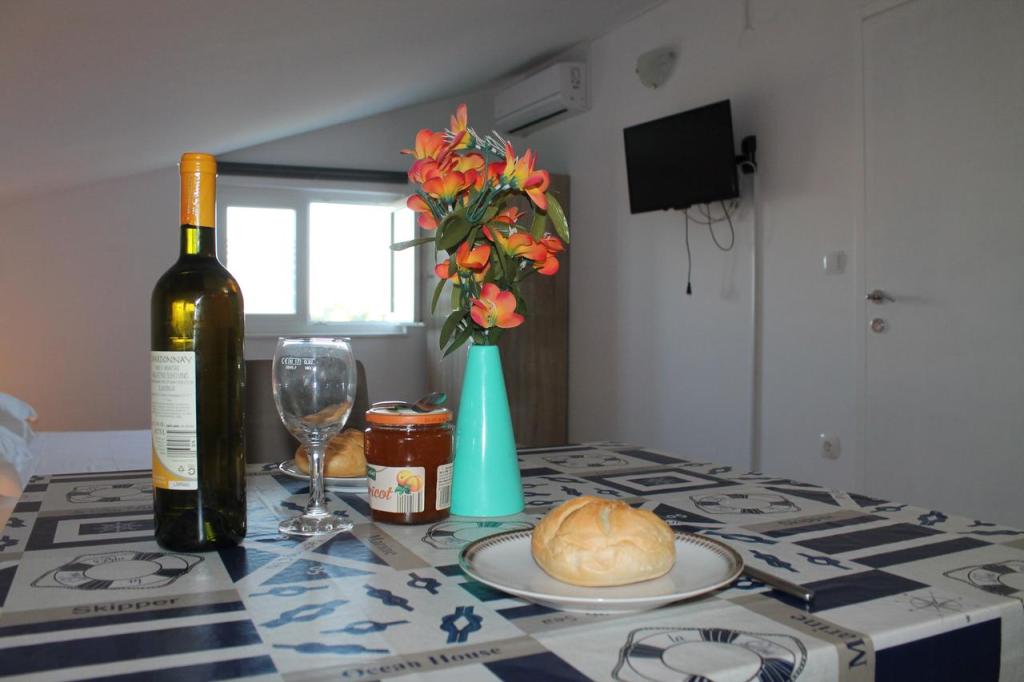 Nowocześnie wyposażony apartament z jedną sypialnią, łazienką, salonem, w pełni wyposażoną kuchnią i tarasem z pięknym widokiem na morze. Odpowiedni dla 4 osób. Podwórko przystosowane jest do wypoczynku w cieniu, korzystania z ogrodowego grilla i parkingu.