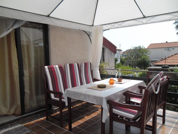 bardzo pomocna pani właścicielka, przywitała nas domową rakią i własną miętową lemoniadą, czyste, przytulne zakwaterowanie, kuchnia w pełni umeblowana, piękny taras, piękny ogród, plaża około 30 m, plaża-beton, w wodzie małe kamienie można chodzić bez butów woda, około 200 m plaża od tych kamieni, najbliższa restauracja około 5 minut, do miasta przy plaży około 15 minut spacerem