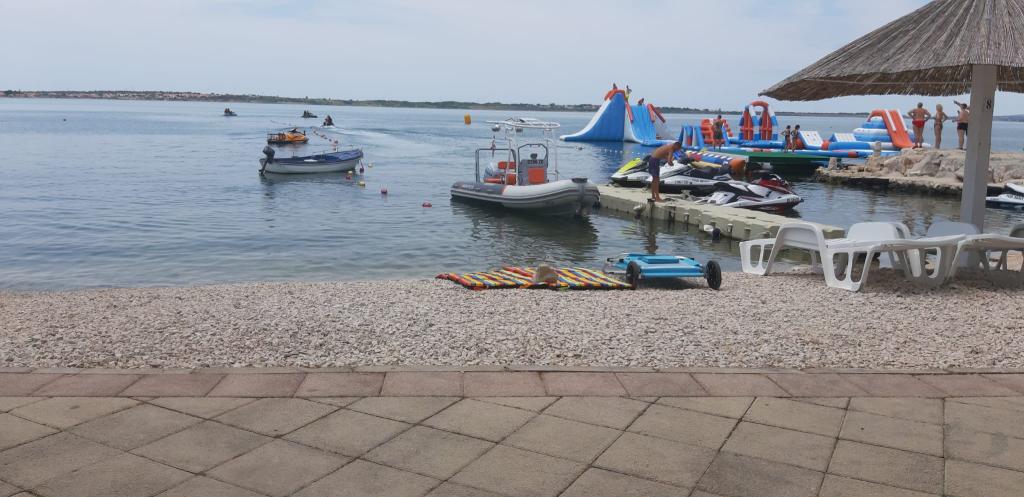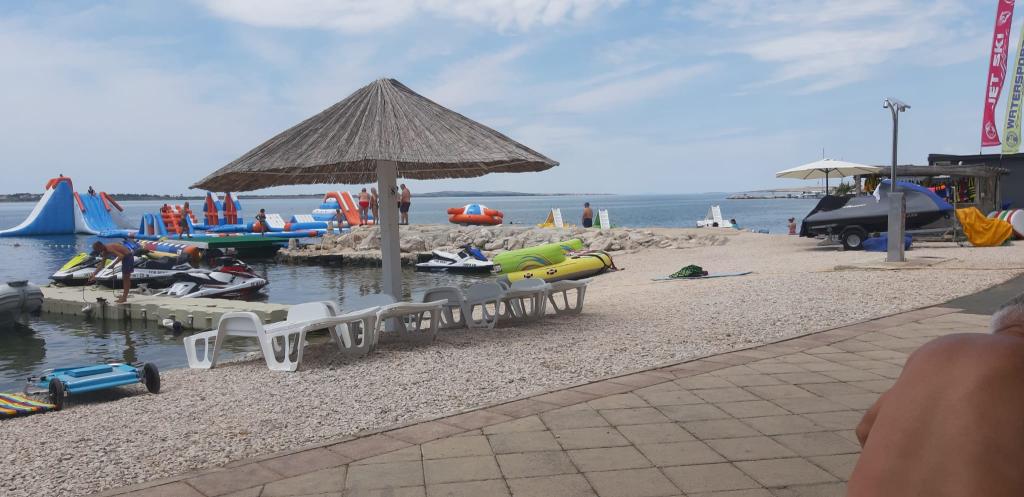 Apartament jest dostępny do wynajęcia od 25.8.2025 w przystępnych cenach. Apartament „Idi pa Vidi” znajduje się w miejscowości Vrsi, niedaleko Ninu (4 km), a odległość od Zadaru wynosi 23 km. Z Zagrzebia jest to 2,5 godziny jazdy samochodem. Oferujemy 2 apartamenty z osobnymi wejściami. Gmina Vrsi ma 14 plaż, a najbliższa plaża znajduje się 320 m od apartamentu. Plaże w Vrsi są głównie piaszczyste i żwirowe (najsłynniejsza plaża znajduje się w pobliżu Ričina). W odległości spaceru znajduje się supermarket, targ, piekarnia, restauracje, sklep mięsny i park rozrywki. Dom znajduje się w ślepej uliczce, z zagospodarowanym trawiastym podwórkiem, a dla gości dostępny jest prysznic na świeżym powietrzu i grill. Apartament na pierwszym piętrze ma salon z tarasem i widokiem na morze i jest podzielony na dwa poziomy. Na pierwszym poziomie znajdują się 2 sypialnie (jedna z nich ma łóżko podwójne, a druga z balkonem ma łóżko piętrowe (z 2 łóżkami) i łazienkę, natomiast trzecia sypialnia (która ma również toaletę) znajduje się na galerii apartamentu. Apartament może pomieścić maksymalnie 7 osób.
