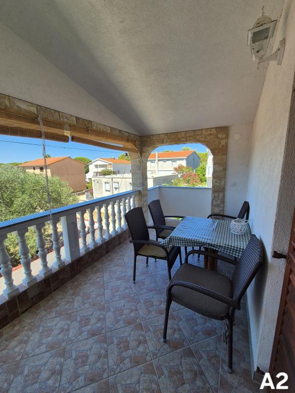 Apartamenty znajdują się w spokojnej części (Bilotinjak 1), w pobliżu miasta Nin. Apartamenty zostały niedawno odnowione. Każdy apartament składa się z łazienki, sypialni z podwójnym łóżkiem, kuchni i dodatkowego łóżka dla dwóch osób. Apartament dysponuje tarasem z widokiem na morze od strony południowo-zachodniej. Oba apartamenty mają zabezpieczone miejsce parkingowe na podwórku. Grill i prysznic na świeżym powietrzu są dostępne. Przestronna, naturalna piaszczysta plaża, z dala od domu, trzysta metrów, jest odpowiednia dla dzieci.