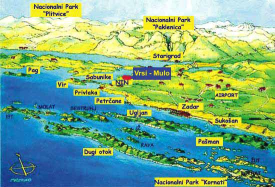 Apartament znajduje się w Vrsi, półwyspie położonym w północno-zachodniej części północnej Dalmacji, 20 km od Zadaru, w odległości 7 km od ośrodków turystycznych Bay i 5 km od najstarszego chorwackiego miasta królewskiego Nin. Mieszkanie jest 125m2, w pełni wyposażony i posiada taras z widokiem na morze; idealne do wypoczynku w ciszy, z dala od centrum miasta.