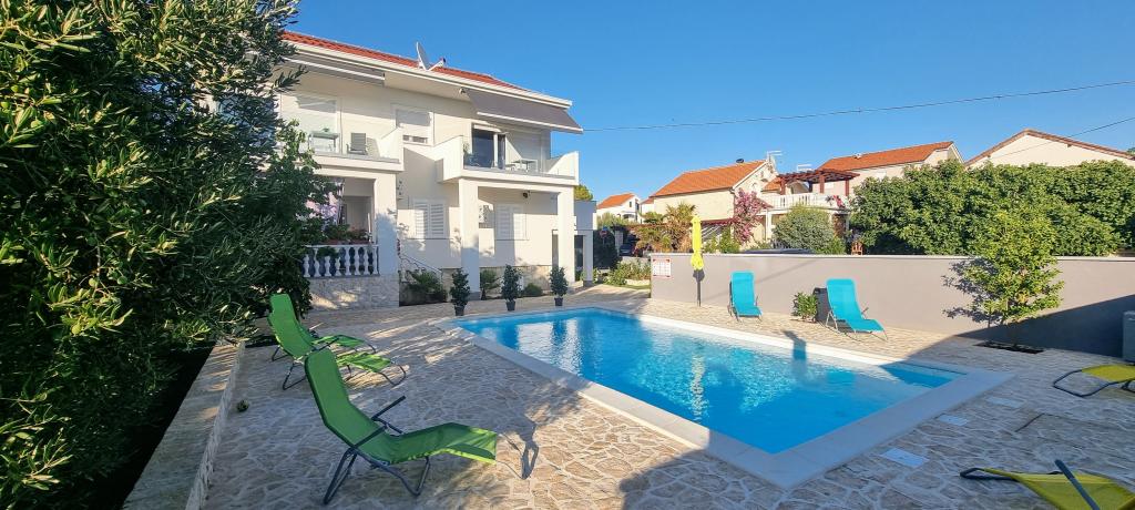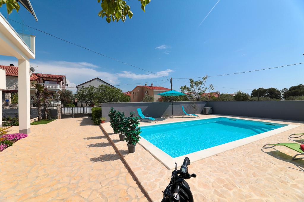 Nasz dom położony jest w bardzo pięknej i bardzo cichej okolicy w malowniczej miejscowości Vrsi. Piękny krajobraz, piękna przyroda, ciekawa kultura i zdrowy klimat to cechy, które wyróżniają nas na tle innych miejsc. Główna plaża znajduje się bardzo blisko naszego domu i można do niej dojść krótkim spacerem (80 metrów lub 2 minuty spacerem). Dom posiada dwa nowoczesne apartamenty wybudowane w 2019 roku. Większy apartament „Alan 3” ma 4 gwiazdki i jest idealny dla dużych rodzin do 6 osób, natomiast mniejszy apartament „Alan 2” z 3 gwiazdkami przeznaczony jest dla rodzin z dwójką dzieci lub może stać się romantyczną przystanią dla par w kocham. Każdy apartament posiada balkon z widokiem na piękną zatokę i duży podgrzewany basen otoczony z jednej strony pięknie zagospodarowanym ogrodem z kwiatami i owocami cytrusowymi, a z drugiej małym gajem oliwnym, który zapewnia przyjemny cień w upalne letnie dni. Taras z miejscami do siedzenia zapewnia relaksujące chwile w ciągu dnia lub letnie wieczory.
