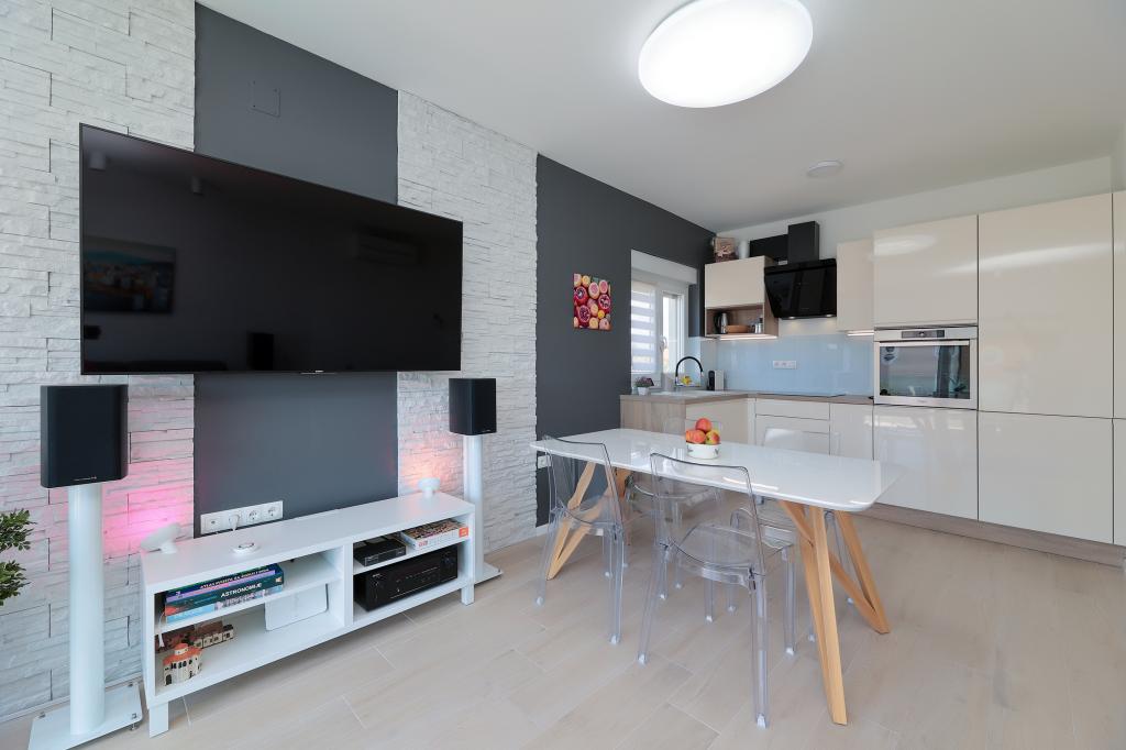 Apartamenty są luksusowo wyposażone w inwerterowe klimatyzatory Mitsubishi w każdym pokoju, duży przekątny telewizor z wszystkimi europejskimi programami satelitarnymi, Netflix, nowoczesną kuchnię z płytą indukcyjną, łazienkę z prysznicem, dużą nowoczesną markizę balkonową podnoszącą się i opadającą oraz duży apartament "Alan 3 " posiada biurko z monitorem 4K o dużej przekątnej. Można również wypożyczyć rowery elektryczne o zasięgu ponad 60 km na jednym ładowaniu akumulatora.