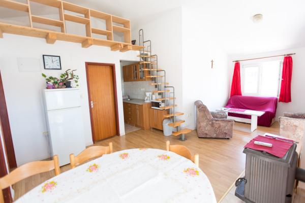 Spędziliśmy tutaj 2 piękne tygodnie. Mieszkanie jest piękne, przestronne i czyste. Miłą niespodzianką było odświeżenie w lodówce z domu. Taras jest duży i przestronny, piękne widoki na góry i morze. Lokalna plaża, kilka minut spacerem od obiektu, to miejsca z piaskiem w morzu i stopniowym zniżaniu, odpowiednie dla dzieci. Piekarnia i sklep 3 minuty spacerem. Domaci są bardzo mili, pozwalają nam myć rzeczy. Zaprosili nas również na obiad, grillowane ryby, a my spędziliśmy z nimi miły wieczór na ich tarasie ... Dijana i Zlatko dziękuję za piękne 2 tygodnie.