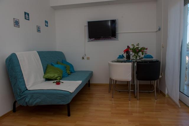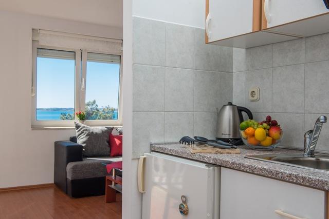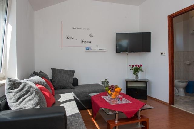 Apartamenty Fila składają się z 6 apartamentów, 4 jednopokojowych i dwóch kawalerek. Apartamenty położone są w spokojnej okolicy, ok. 30 metrów od plaży Mulo-Vrsi i 250 metrów od centrum Mulo-Vrsi, gdzie znajduje się wiele restauracji, sklepów z pamiątkami i sklepów. W bezpośrednim sąsiedztwie, około 50 metrów, znajdują się dwie kawiarnie i restauracja typu fast food. Plaża Mulo-Vrsi oferuje różnorodne atrakcje sportowe, takie jak: kitesurfing, windsurfing, wypożyczalnia łodzi, parasoli i leżaków.