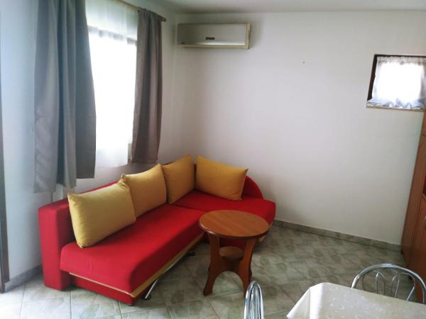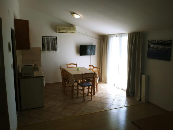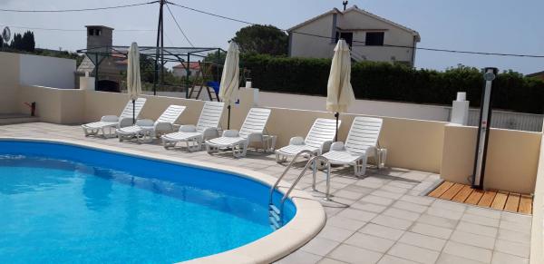 Apartamenty znajdują się w Vrsi-Mulo w pobliżu miasta Nin. Vrsi jest otoczone linią brzegową o długości 35 km i ma różne plaże na każdy gust, jak kamień, piasek, żwir. Najbliższa plaża jest żwirowa, odpowiednia dla małych dzieci. Sklep znajduje się 80 metrów od apartamentu, a restauracja jest oddalona o 100 metrów. W Vrsimie jest wiele barów, restauracji i tawern. Masz możliwość wynajęcia łodzi, skuterów wodnych, rowerów wodnych i wycieczek łodzią. Apartamenty posiadają parking, grill do opalania, plac zabaw dla dzieci, trampolinę i stół do tenisa stołowego. Podwórko jest ogrodzone i bezpieczne dla dzieci. Wymiary basenu to 8x4, 2m i 1,5m głębokości. Apartamenty wyposażone są w klimatyzację, Wi-Fi, kuchenkę mikrofalową, czajnik elektryczny, telewizję satelitarną, taras. A jeśli tego potrzebujesz, jesteśmy do Twojej dyspozycji.