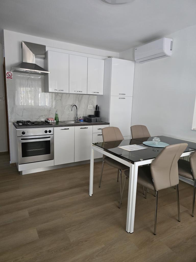 Apartamenty Leonardo znajdują się w rodzinnym domu z łącznie 3 apartamentami. Dom położony jest w spokojnej części miasta, niedaleko piaszczystej plaży Prodorica, co jest doskonałym wyborem dla rodzin z dziećmi. Do centrum Nin można dojść w 15 minut lub dojechać samochodem w 5 minut. Apartamenty składają się z dwóch sypialni z łóżkiem podwójnym i dwoma łóżkami pojedynczymi, łazienki z wanną/prysznicem, w pełni wyposażonej kuchni i jadalni oraz zadaszonego tarasu na świeżym powietrzu. Do dyspozycji gości: klimatyzacja, telewizor, kuchenka mikrofalowa, czajnik, pralka, suszarka do włosów, żelazko, łóżeczko i podajnik dla dziecka. Do każdego mieszkania przynależy parking na podwórzu budynku.