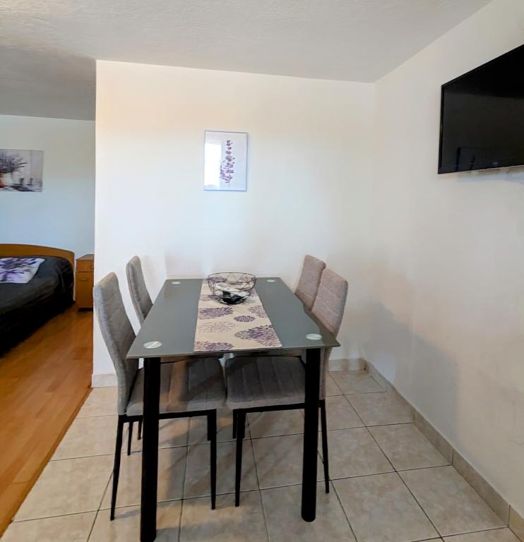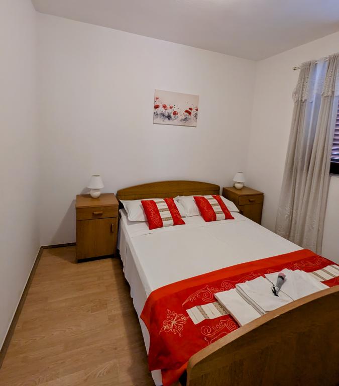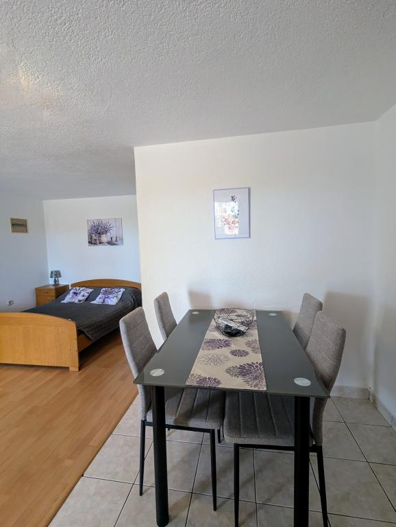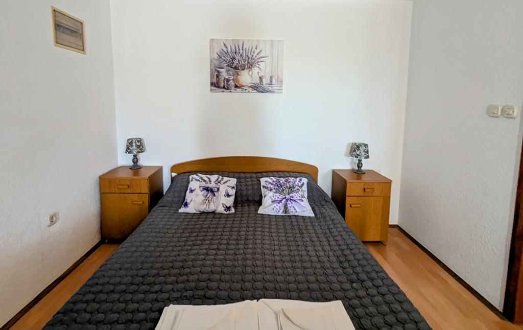 * Ta nieruchomość jest obecnie niedostępna. * Cztery w pełni wyposażone apartamenty z widokiem na góry, morze i/lub ogród. Bardzo duże tarasy z meblami ogrodowymi. Cicha okolica, brak miejsc parkingowych na ulicy. Dodatkowy prysznic i toaleta na zewnątrz, idealne do spłukania piasku po dniu spędzonym na plaży. Krótki spacer do laguny Nin i plaży Queens. Krótki spacer do Nin, gdzie znajduje się wiele restauracji i sklepów. W pobliżu znajdują się również piekarnie i inne sklepy. Kilka kroków do pierwszego piętra, ale studio i apartament z jedną sypialnią znajdują się na płaskim terenie.