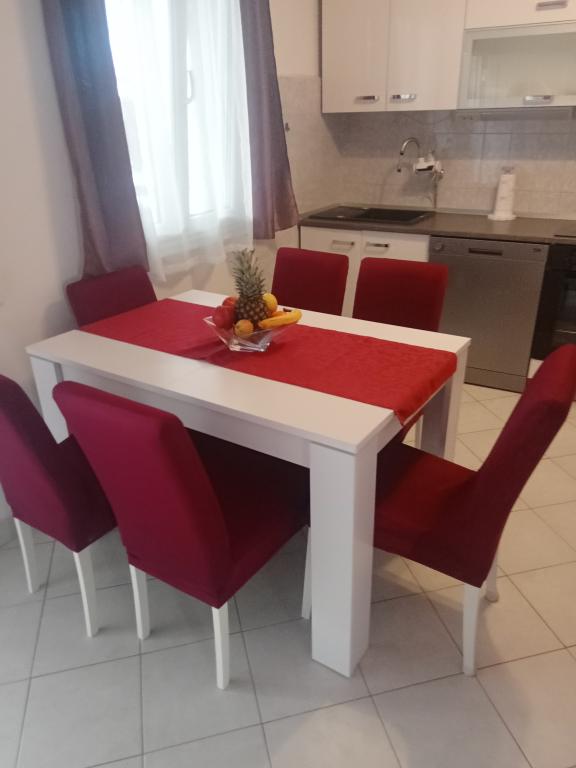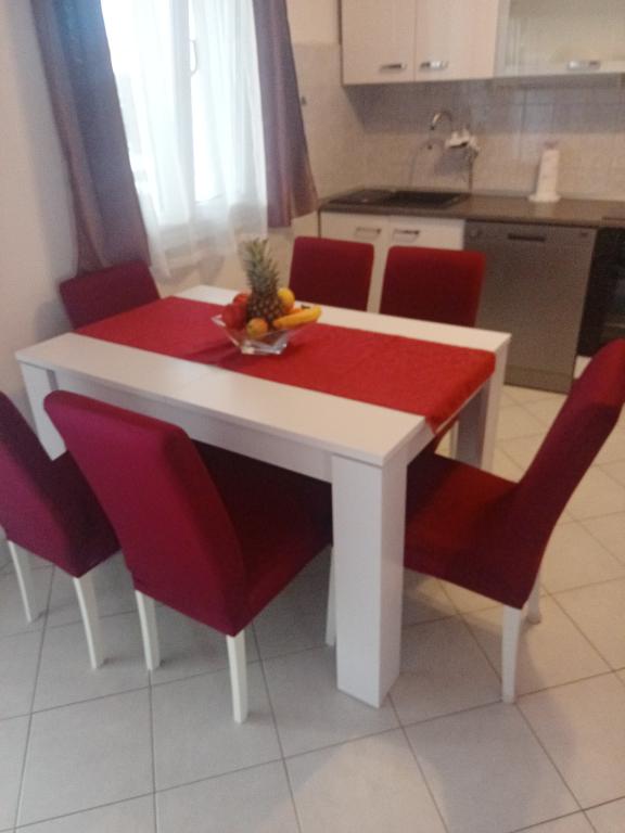 Apartamenty Miljenka Nin położone są 80 metrów od piaszczystej plaży. Odległość do centrum miasta wynosi 800 m. Goście obiektu, oprócz życzliwych gospodarzy, mają do dyspozycji miejsce parkingowe na terenie obiektu. Na podwórku znajduje się również grill ogrodowy. Obiekt składa się z 3 apartamentów, jednego większego apartamentu dla 4+1 osób, który znajduje się na parterze, oraz 2 apartamentów typu studio z łóżkami 2+1. Wszystkie apartamenty wyposażone są w klimatyzację, dostęp do Wi-Fi i telewizję satelitarną. W apartamentach znajduje się łazienka z prysznicem. Kuchnie wyposażone są w kuchenkę mikrofalową, lodówkę, zmywarkę, ekspres do kawy i urządzenie do przygotowywania wody.