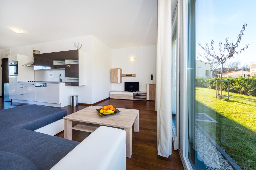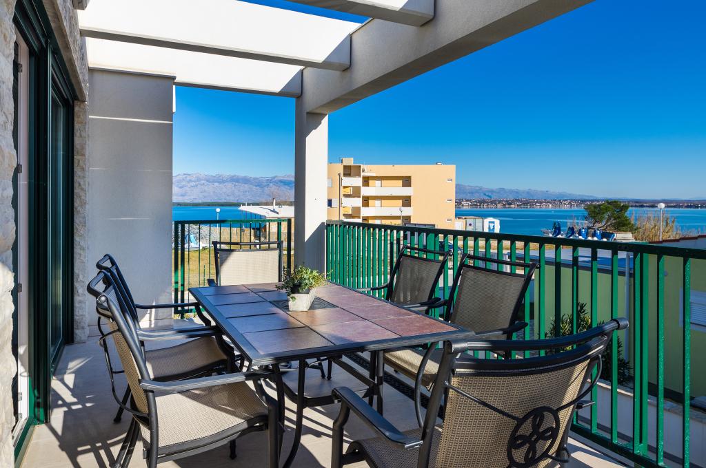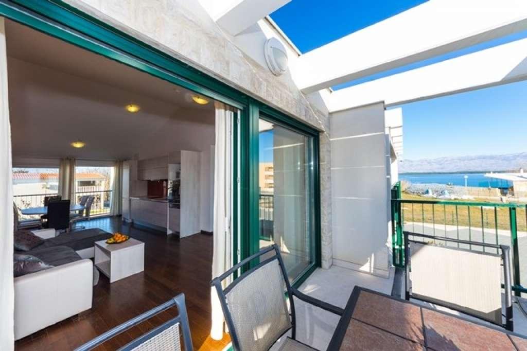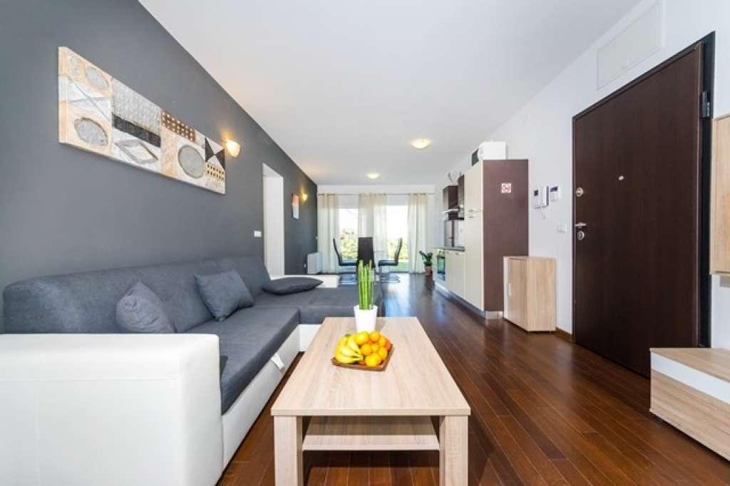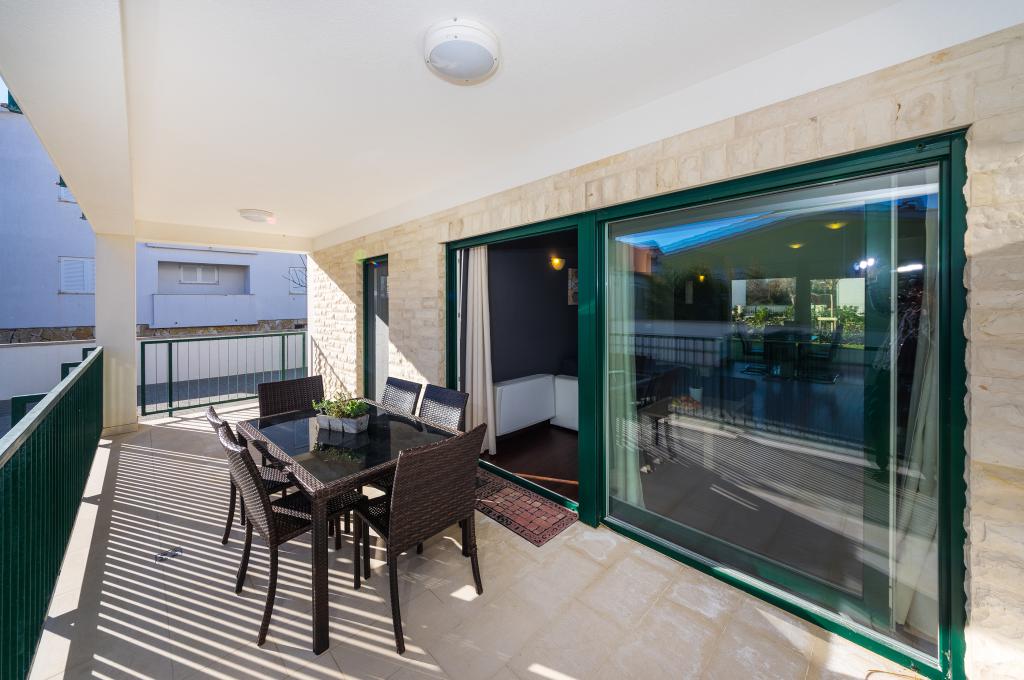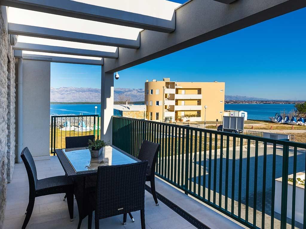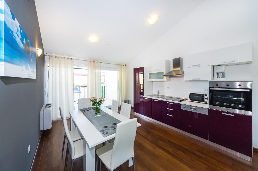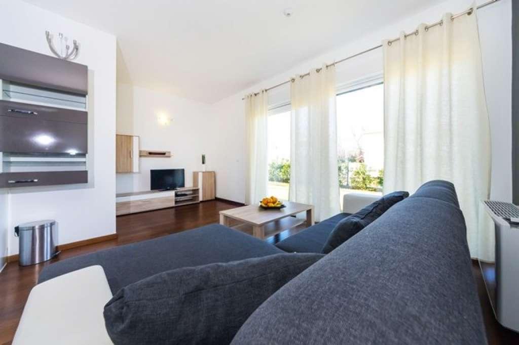 Całkowicie nowoczesne, nowoczesne i nowo wyposażone apartamenty. Apartamenty mają widok na morze i samą piaszczystą plażę. W apartamentach znajdują się wszystkie szafy w zabudowie, nowoczesna duża kuchnia z pełnym wyposażeniem do gotowania, piekarnikiem i zmywarką, łazienka z kabiną prysznicową, toaletą, umywalką i pralką, lodówka z zamrażarką, duży stół w jadalni pokój z krzesłami, narożnik w salonie z TV i anteną satelitarną, z którego jest wyjście na duży taras. Dwie sypialnie z wyjściem na taras. Na tarasie znajduje się duży stół z sześcioma krzesłami, dzięki czemu można cieszyć się pięknym widokiem na morze przez cały dzień i noc.