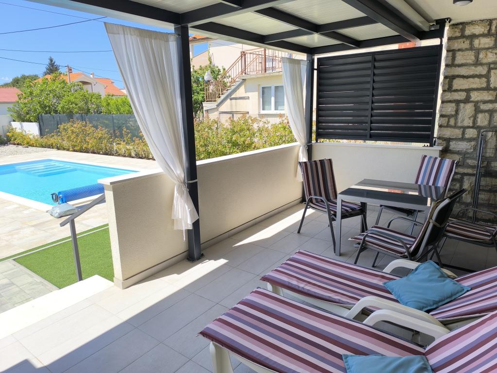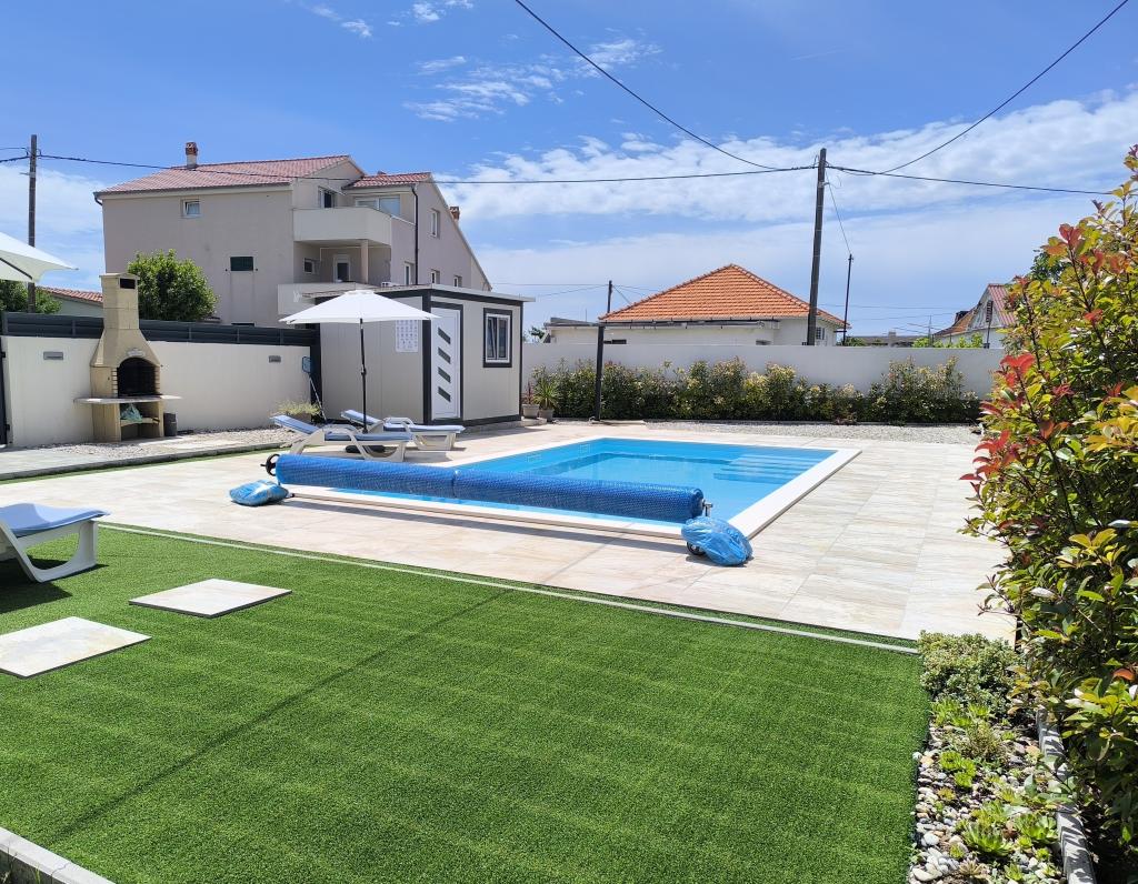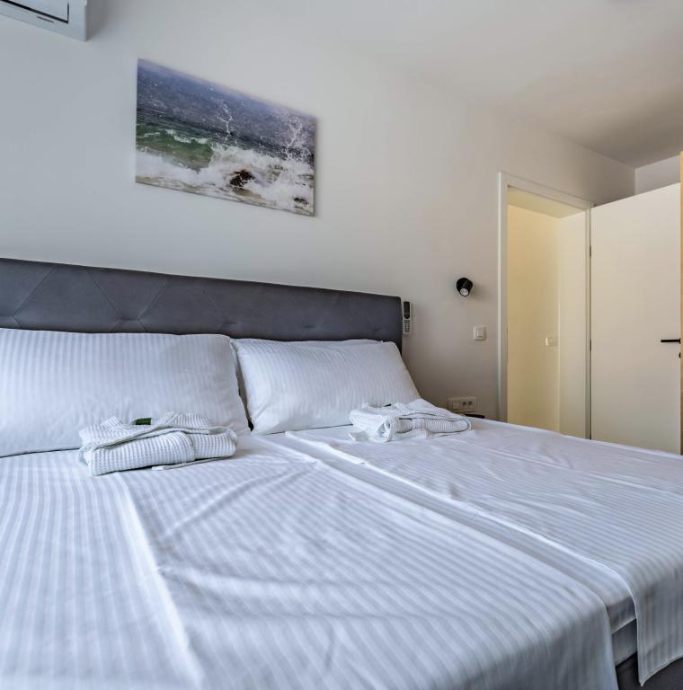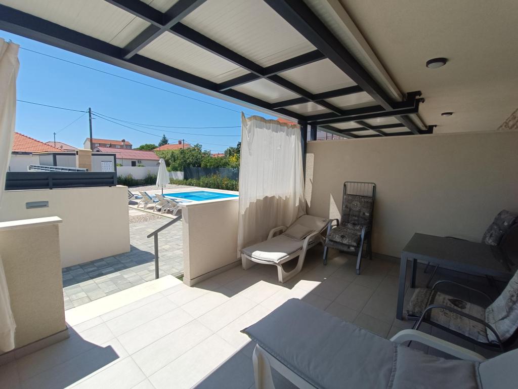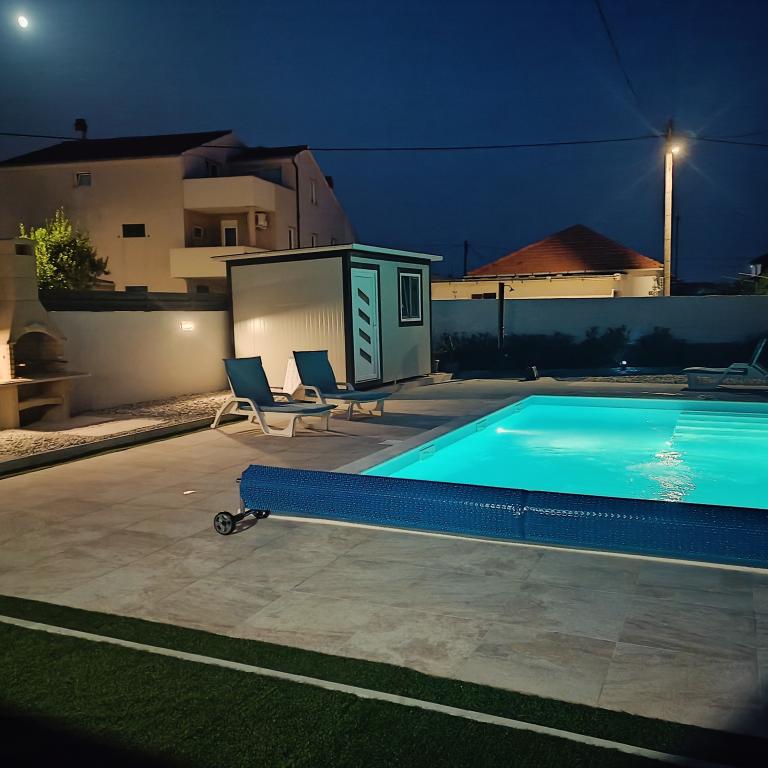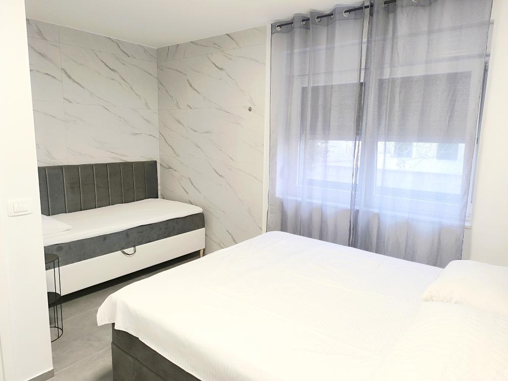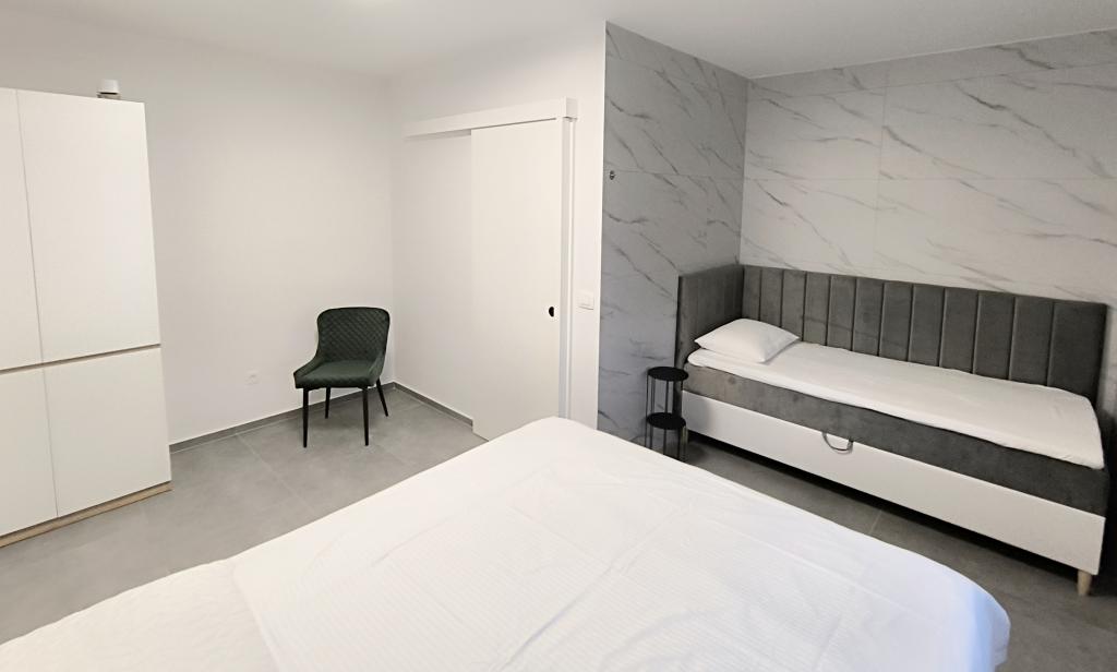 Podgrzewany basen (nieczynny od 15.10.2025 do 1.5.2026) Zapraszamy do Royal Place Apartments, apartamentów położonych w urokliwym królewskim mieście Nin, zaledwie 16 km od zabytkowego miasta Zadar. Oferujemy dwa luksusowe apartamenty. Apartament z jedną sypialnią (pokój rodzinny, łóżko podwójne + łóżko pojedyncze) oraz apartament z dwiema sypialniami na parterze, w spokojnej okolicy, zaledwie 200 metrów od malowniczej nadmorskiej promenady, lokalnych restauracji i centrum miasta. Plaża oddalona jest o 900 metrów. Przestronne piętro budynku obejmuje spokojny, ogrodzony dziedziniec z bujną śródziemnomorską roślinnością. Dodatkowo do dyspozycji Gości jest podgrzewany basen z wodą morską, miejsce do opalania z leżakami i parasolami, prysznic na świeżym powietrzu oraz grill. Na piętrze budynku nie ma dostępu.