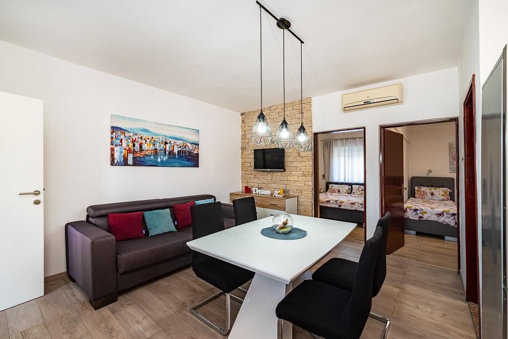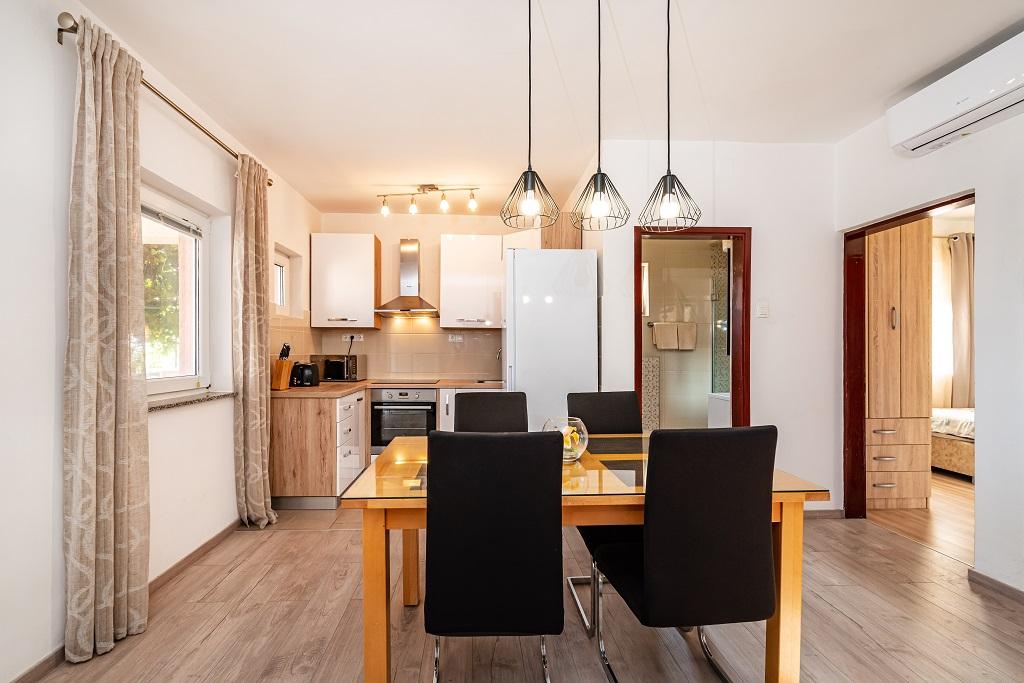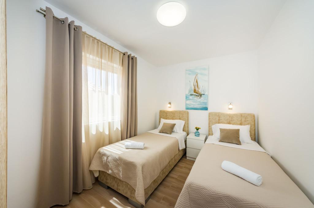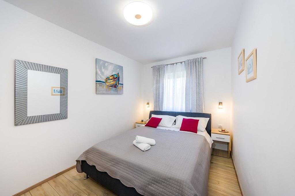 Nasze nowoczesne apartamenty znajdują się w Ninie, nadmorskim miasteczku w południowej części Zatoki Ninskiej na półwyspie Ždrijac, 17 km na północ od Zadaru. Jest to najstarsze miasto królewskie w Chorwacji, położone w pobliżu słynnej piaszczystej plaży Ždrijac. Nin to nie tylko zabytkowe miasto. Wraz z okolicą oferuje również sprzyjające warunki do wypoczynku i rekreacji. Wokół Ninu znajduje się kilka długich, piaszczystych lagun z piaszczystymi plażami, z dala od tłumów, oraz strefa przemysłowa o doskonałym mikroklimacie. Apartamenty położone są w pięknej i bardzo spokojnej okolicy, niecałe pięć minut spacerem od plaży i Morza Adriatyckiego. Dom ma dwa piętra. Właściciele mieszkają na parterze, a dwa apartamenty na pierwszym i dwa na drugim piętrze. Dom jest wolnostojący, a posesja ogrodzona, dzięki czemu jest bardzo odpowiednia dla dzieci. Posiada również parking dla pięciu samochodów i grill w ogrodzie. Apartamenty nie są przystosowane dla osób poruszających się na wózkach inwalidzkich. Dostępny jest bezprzewodowy internet. Plaża i morze znajdują się zaledwie 100 metrów od apartamentów, a inne udogodnienia oddalone są o 600 metrów.