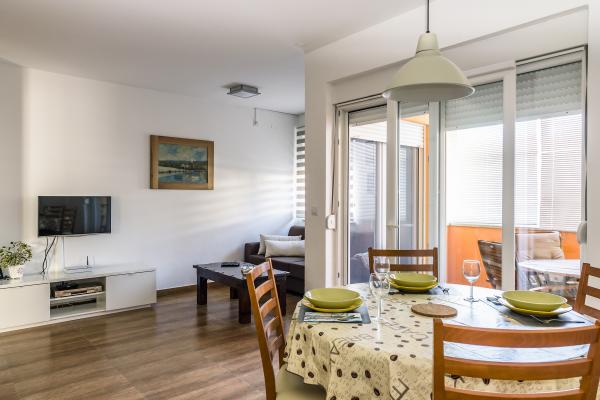 Nowo wybudowany, wyposażony apartament 15 minut spacerem od centrum Nin. Obiekt położony jest w bardzo spokojnej okolicy, około 60 metrów od piaszczystej plaży. W apartamencie znajduje się również zadaszony grill z drewnianymi ławkami i stołem, a także prysznic solarny na świeżym powietrzu. Miejsce parkingowe znajduje się na ogrodzonym podwórzu. Mieszkanie składa się z sypialni, salonu z możliwością dostawki dla dwóch osób, łazienki, balkonu oraz jadalni i jest wyposażone w internet oraz telewizję cyfrową EVO.