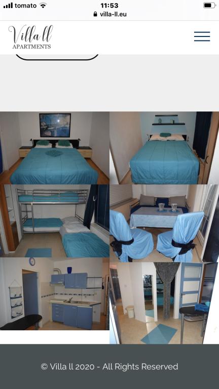 www.VILLA-LL.EU posiada 7 oddzielnych apartamentów, w pełni wyposażonych.Każdy apartament posiada 1 miejsce parkingowe.Parter jest przystosowany dla osób o ograniczonej sprawności ruchowej z invslide, a także prysznicami na zewnątrz i kuchnią, z której mogą korzystać umowa pojemność domu 42 osoby wiber 0031640094445 whatzap 0031640094445 zukve.cro@gmail.com