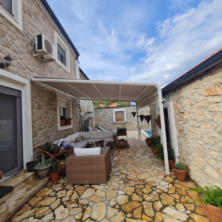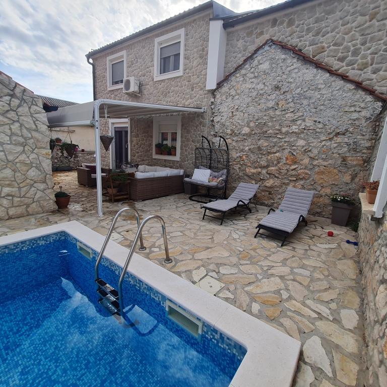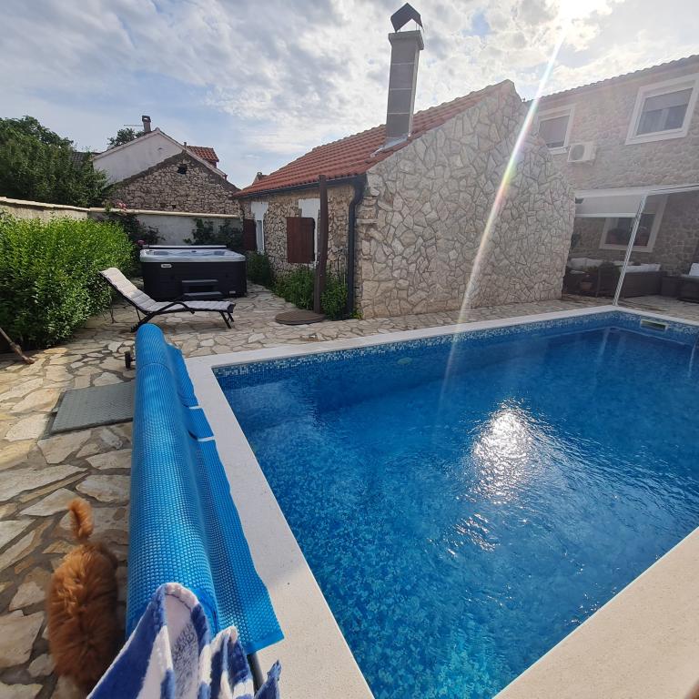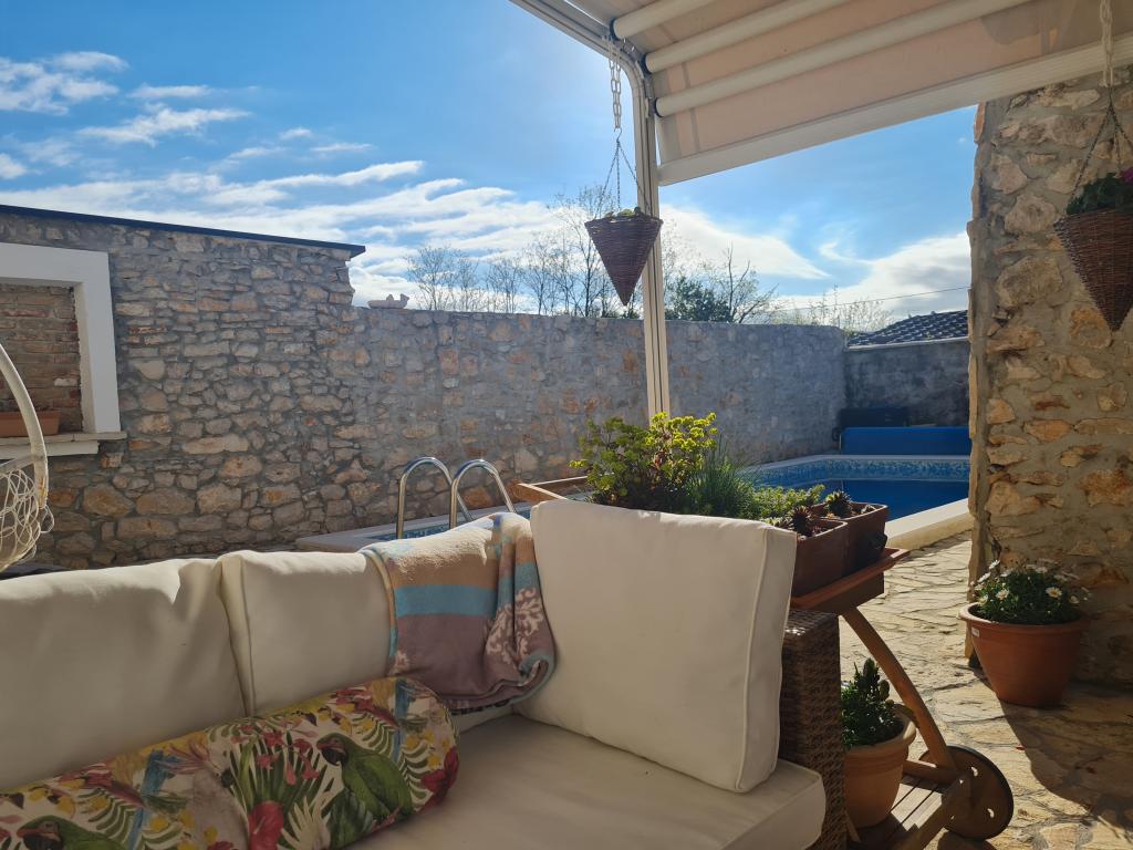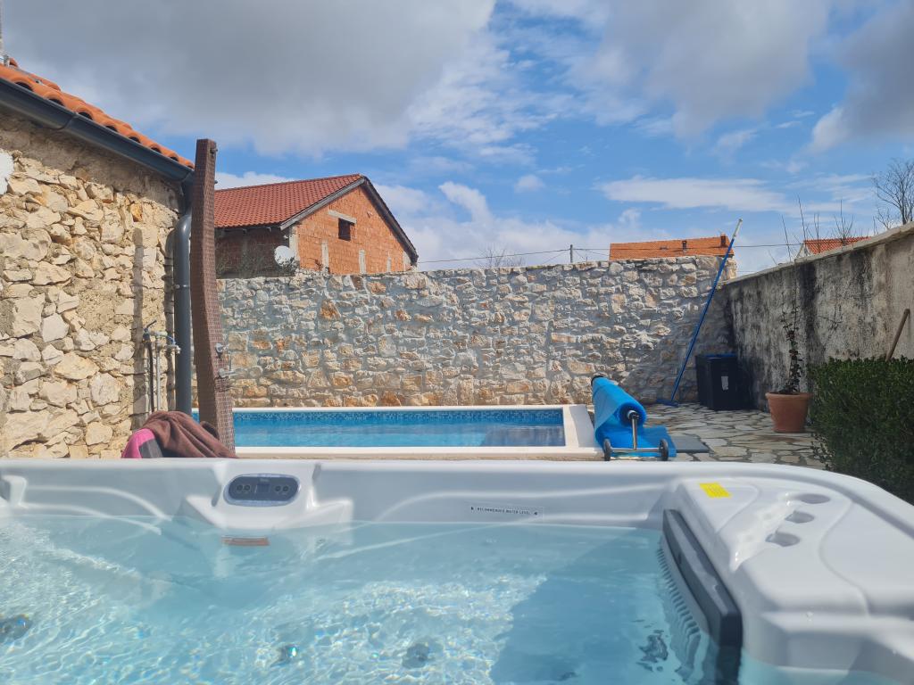 Całkowicie odnowiony dom rodzinny na przedmieściach Nin, miejsce Nin apartamenty. Pięknie i harmonijnie urządzony, z 3 sypialniami. . Dwa pokoje z podwójnym łóżkiem, jeden pokój z 3 łóżkami. . W salonie sofa narożna i fotele. W domu znajduje się wybudowana z kamienia tawerna na miłe spotkania z przyjaciółmi i rodziną. Dziedziniec jest ściśle otoczony murami, w których panuje pełna intymność. Masz również podgrzewany basen, rozmiar? 8x3,5 i jacuzzi dla 5 osób 2x2