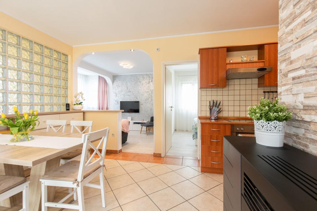 W pełni wyposażony apartament znajduje się na pierwszym piętrze budynku, w spokojnej okolicy Njivica, 5 minut spacerem do centrum lub plaży. Składa się z kuchni z jadalnią, salonu, łazienki z prysznicem, pokoju z łóżkiem małżeńskim, pokoju z dwoma oddzielnymi łóżkami oraz tarasu. Bezpłatny parking znajduje się w budynku.